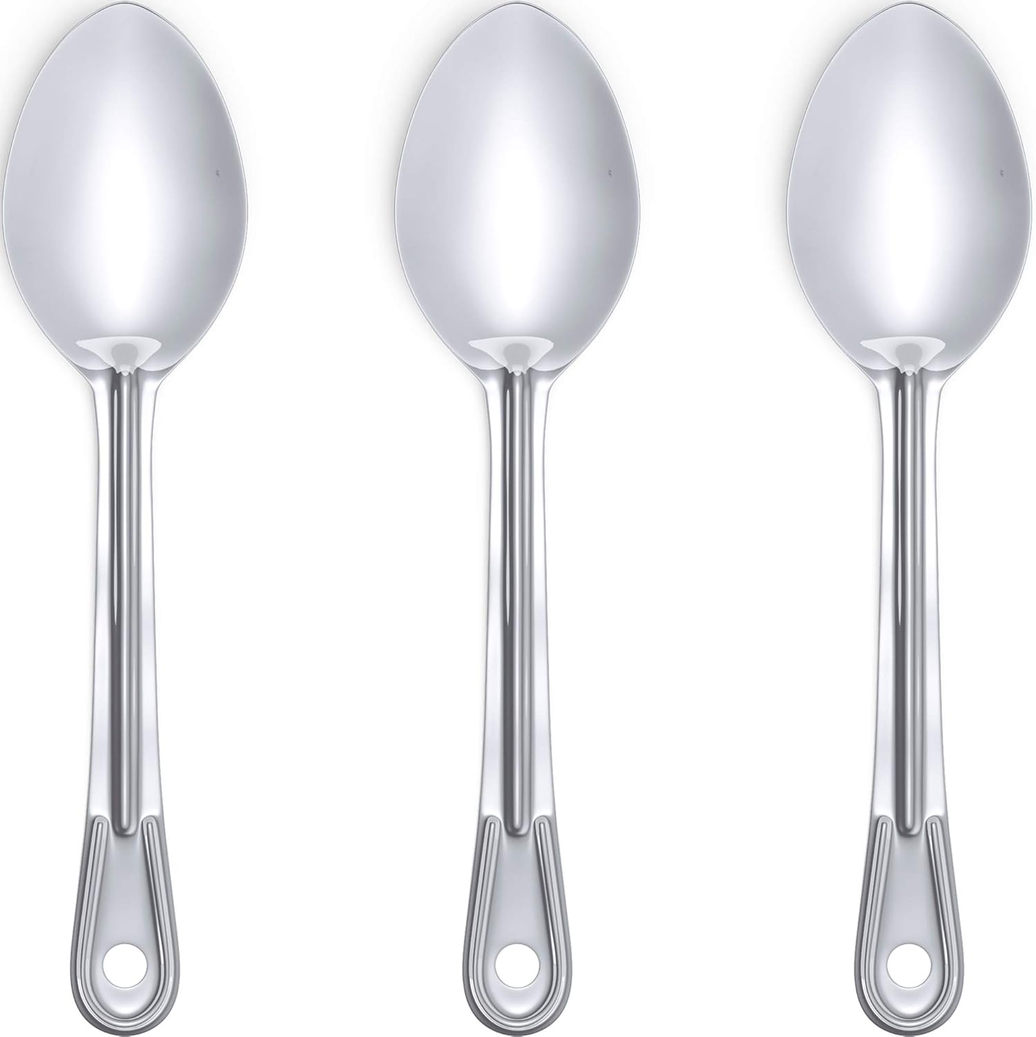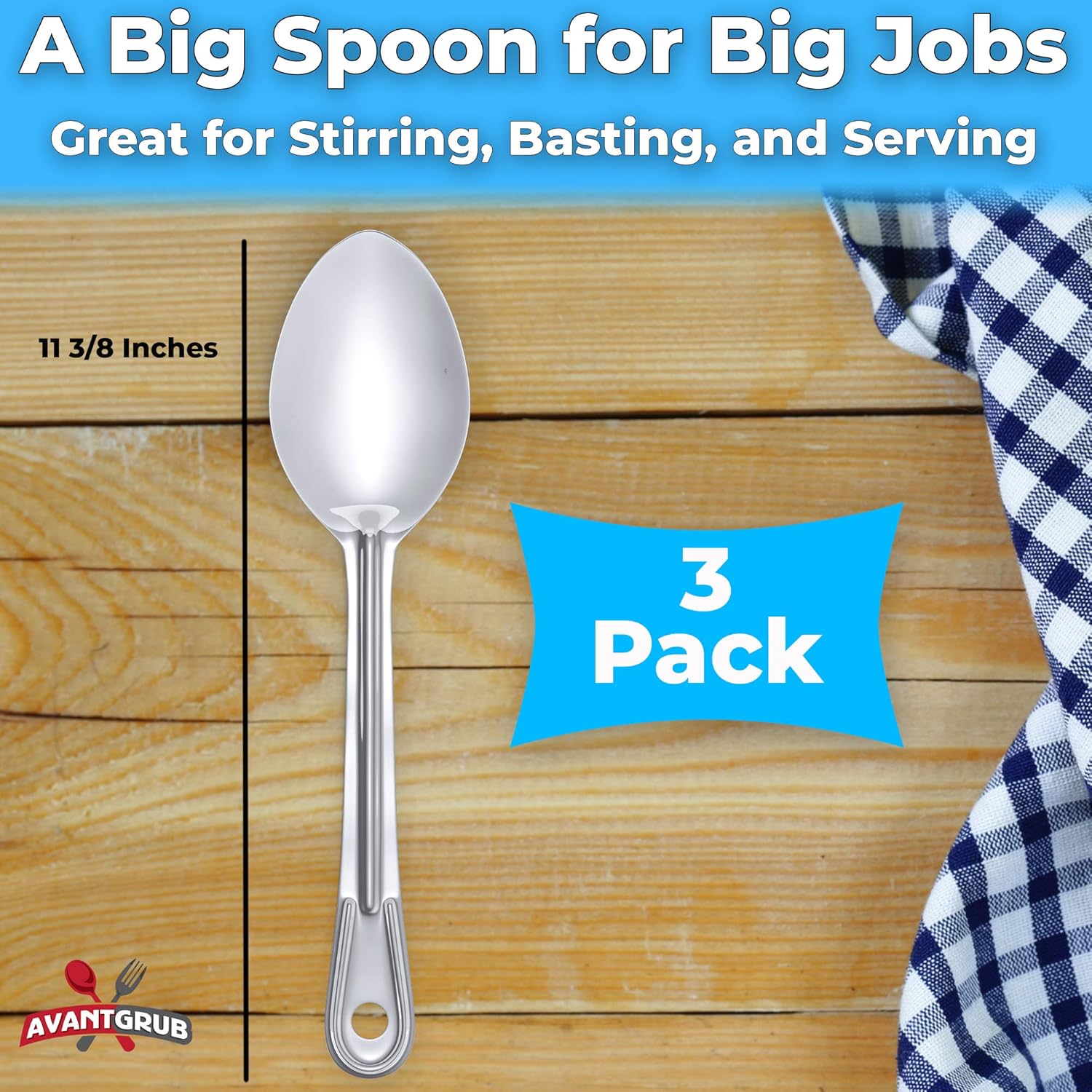 Super Strong, Ergonomic 11 in Serving Spoon 3 Pk. Big, Stainless Steel Spoons for Cooking, Baking, Stirring and Basting. Best Kitchen Flatware for Buffet and Banquet Service in Restaurants and at Home