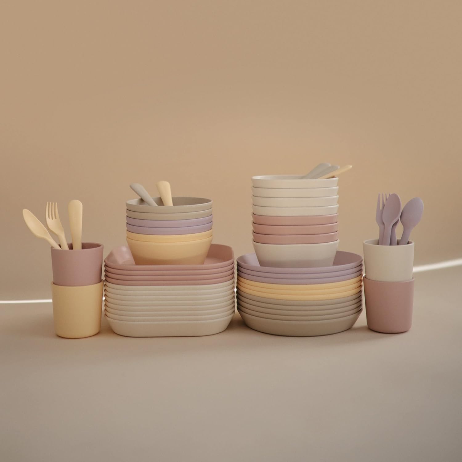 • With soft colors and clean design, this plastic dinnerware cup set is simple and elegant, and easy for your baby to hold.