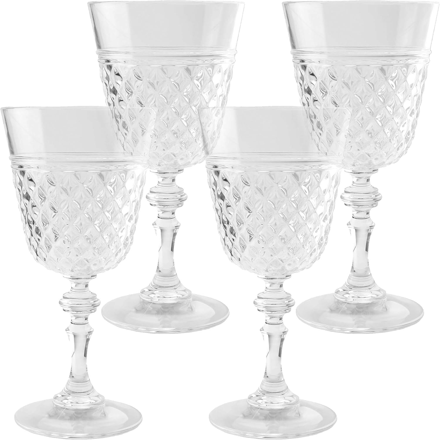 PG Plastic Wine Glasses 15oz - Set of 4 Clear Acrylic Water Glasses - Plastic Tumblers, Safe & Reusable, Drinkware for Indoor & Outdoor Glassware