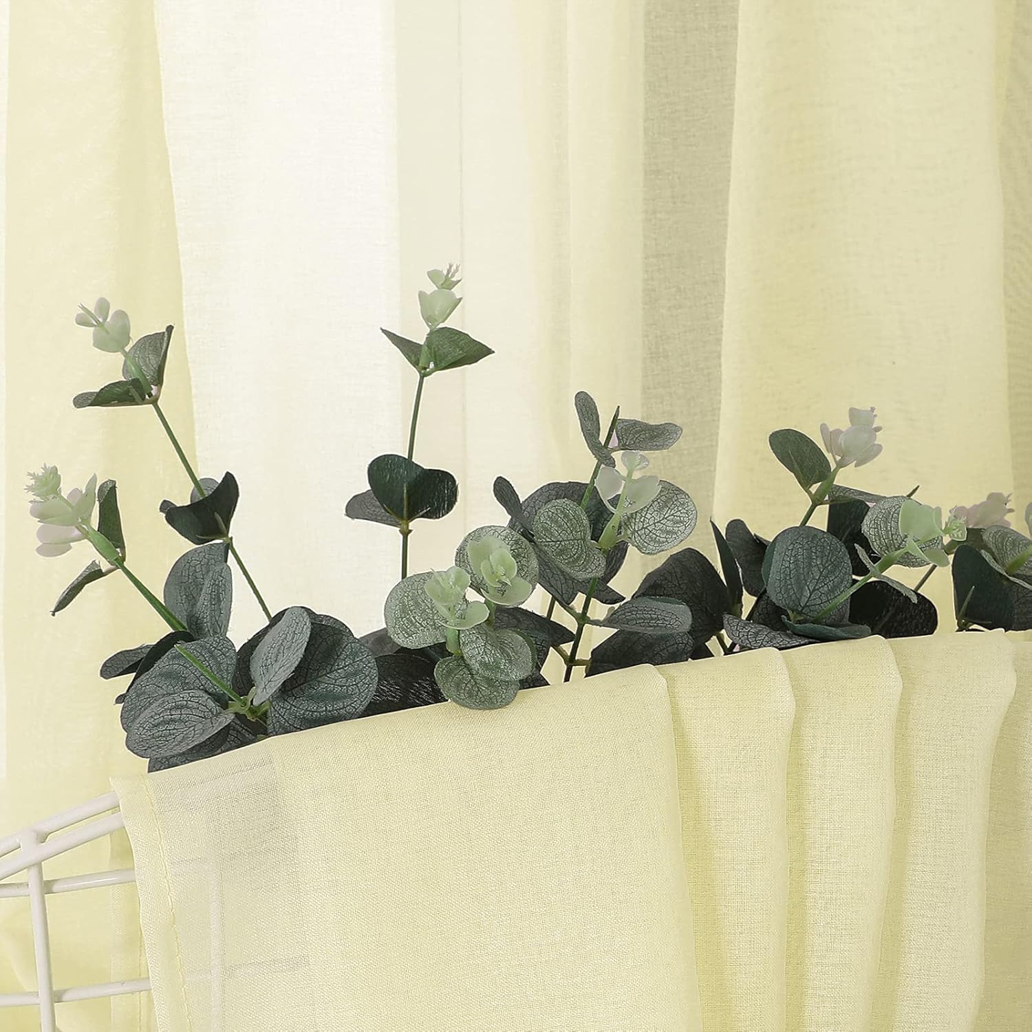 Tollpiz Short Sheer Curtain Linen Textured Bedroom Curtains Sheer Light Filtering Rod Pocket Voile Curtain for Living Room, 54 x 54 inches Long, Transparent Yellow, Set of 2 Panels