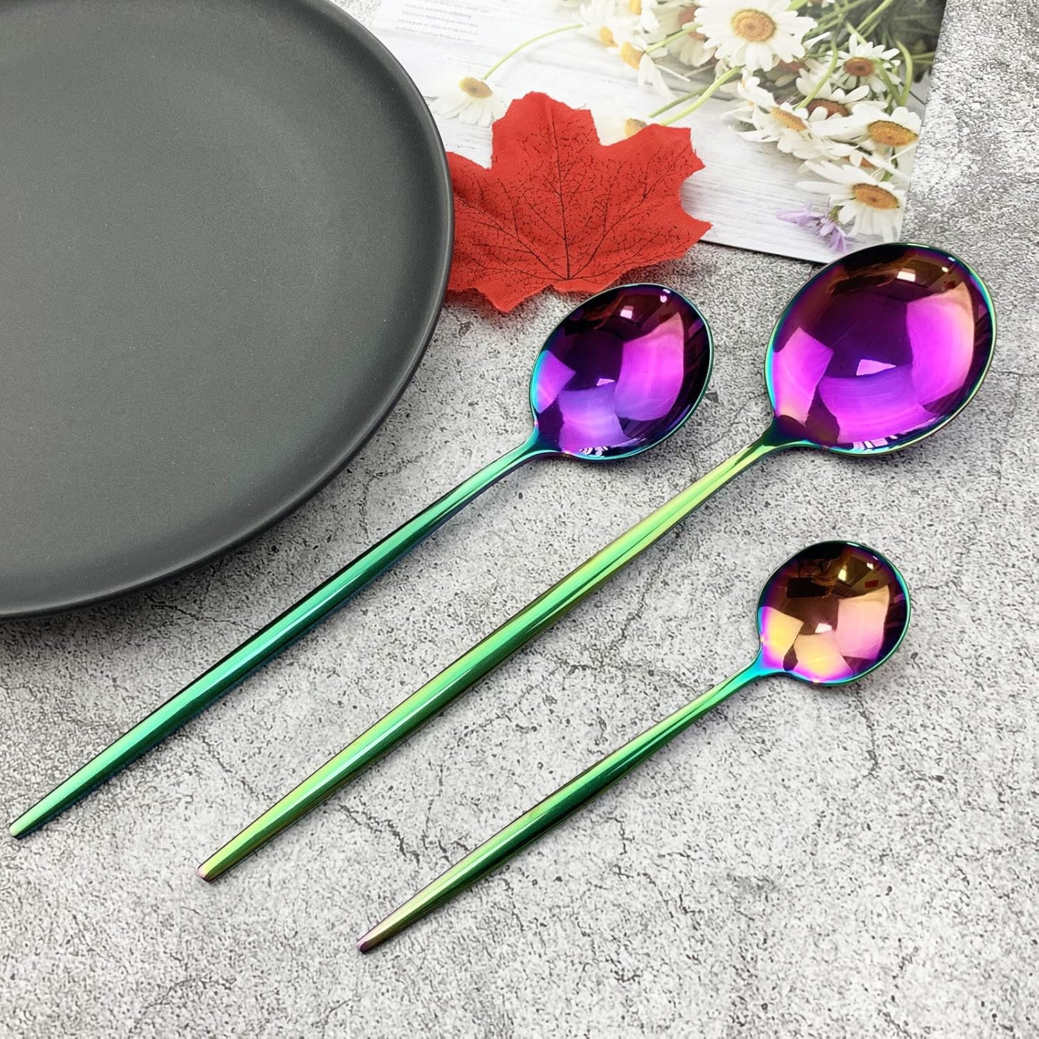 JASHII Silverware Set, Mirror Polished Rainbow Flatware Cutlery Set Service for 4, Shiny Finish 24 Pieces Stainless Steel Utensils Set Dinner Knife Fork Spoon Dessert Fork Salad Spoon Dishwasher Safe