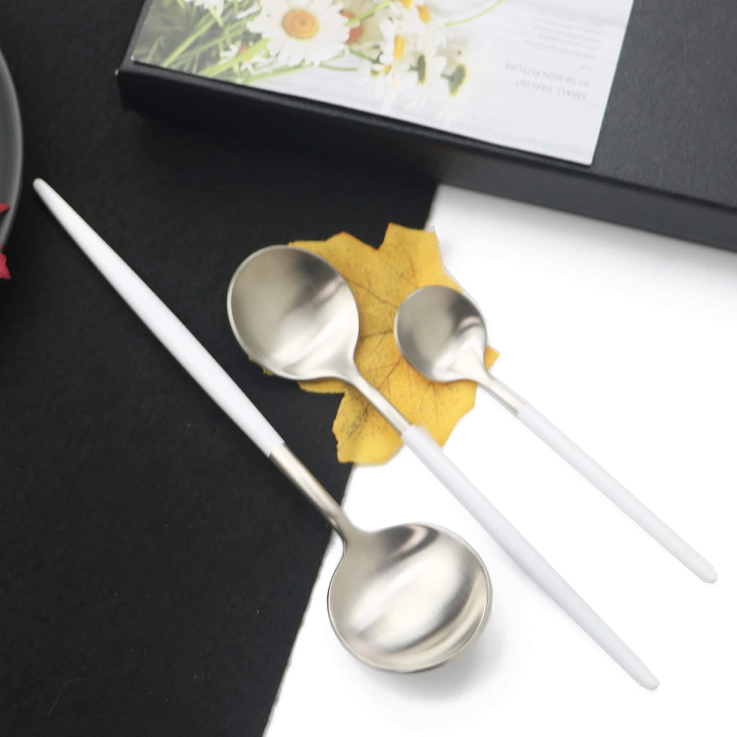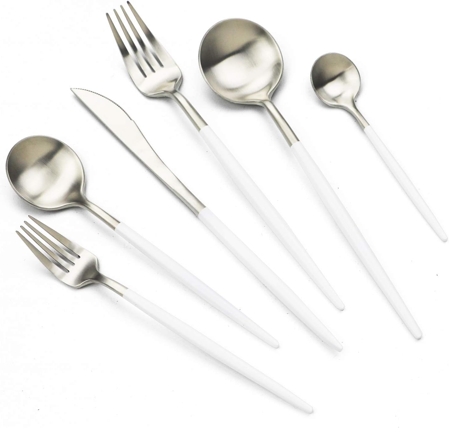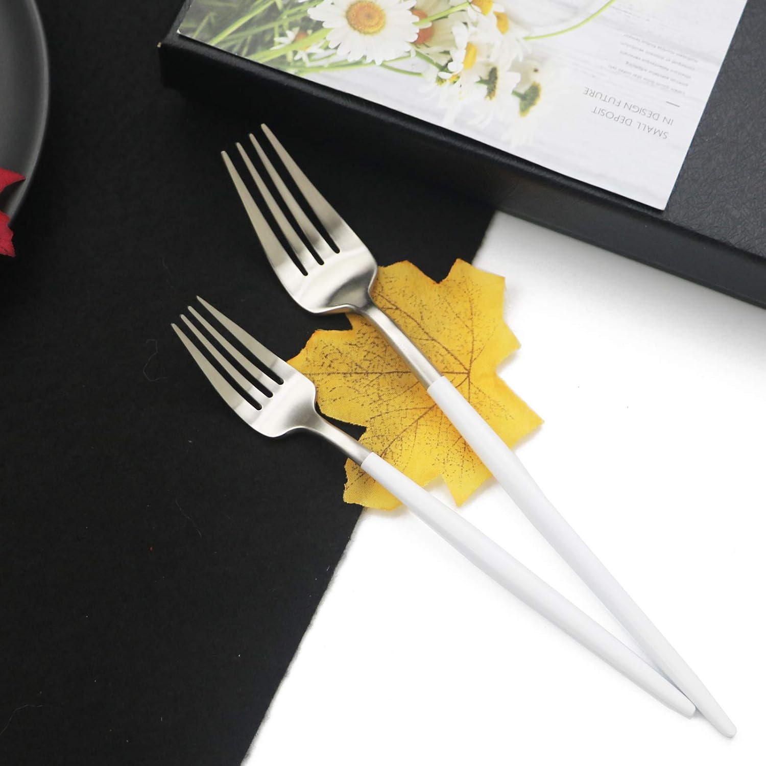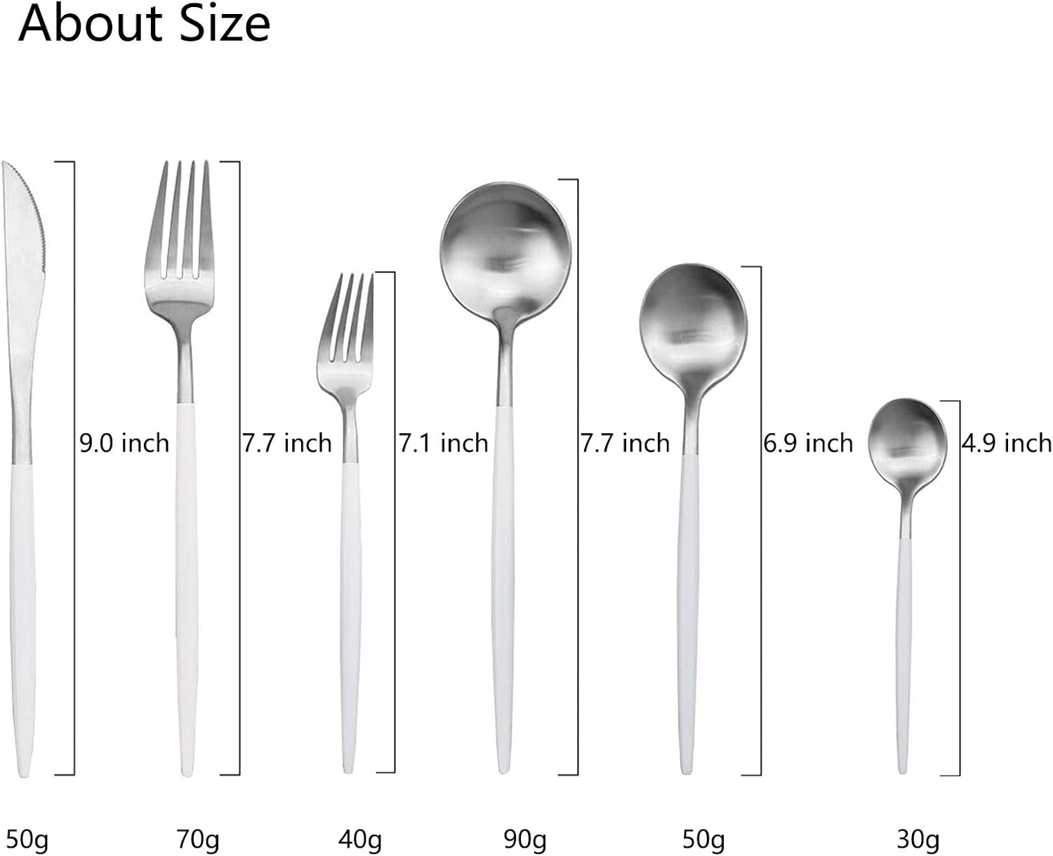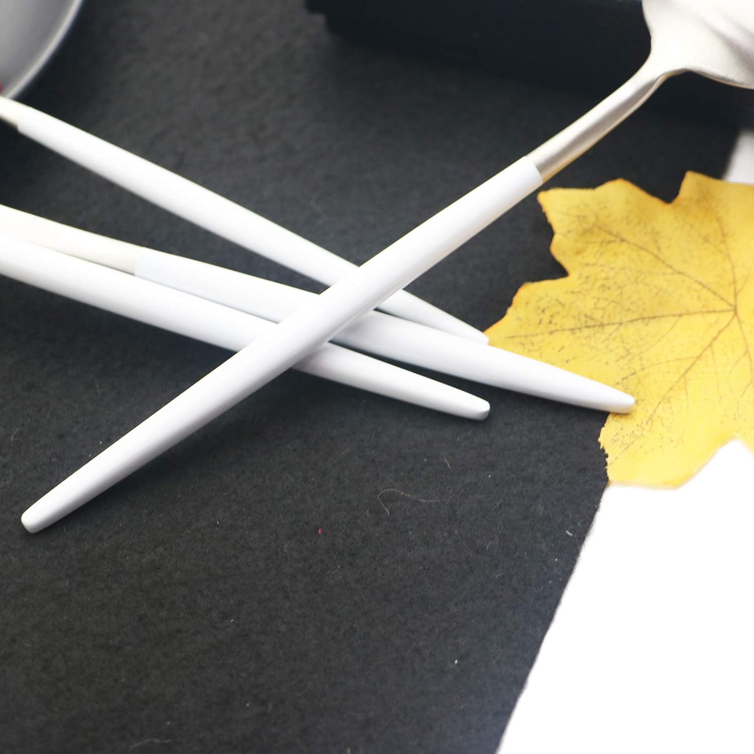 JASHII 18/10 White Handle Flatware Silver Silverware Set 304 Stainless Steel Flatware Cutlery Set| 24-Piece Adaline Royal Modern Satin Finish| BEST Birthday Wedding Gift (White Handle Matte Silver)