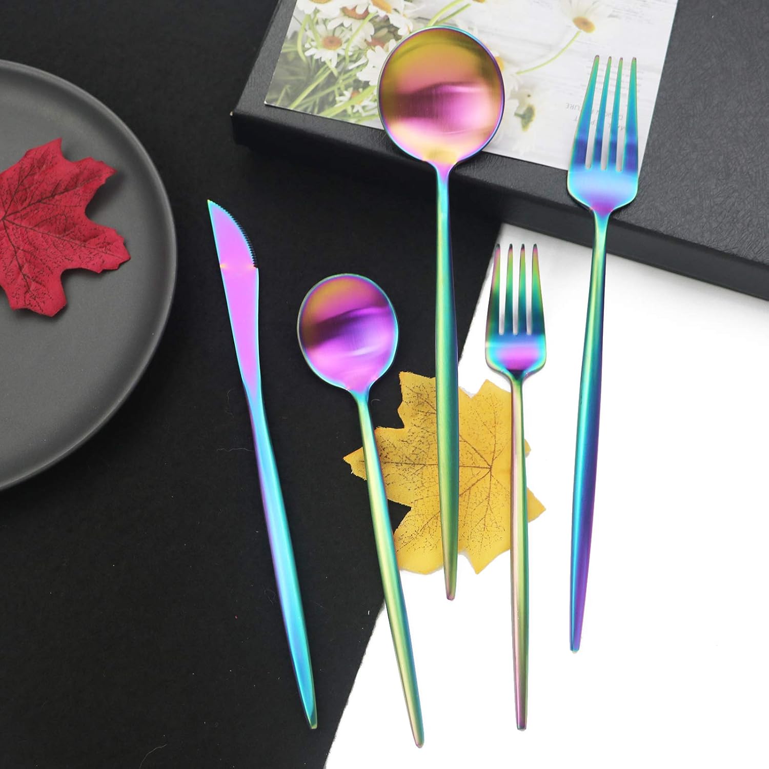 JASHII Luxury 18/10 Rainbow Flatware Silverware Set 304 Stainless Steel Colorful Flatware Cutlery Set| 20-Piece Adaline Royal Modern Satin Finish| BEST Birthday Wedding Gift (Rainbow Matte 4 Sets)