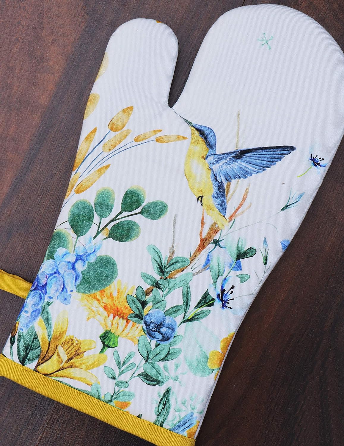 AMOUR INFINI Cotton Oven Mitts Set of 1 with Hanging Loop Non-Slip, Heat Resistant, Reusable Oven Mitt for Baking Cooking Kitchen Oven Gloves (Wild Meadow)