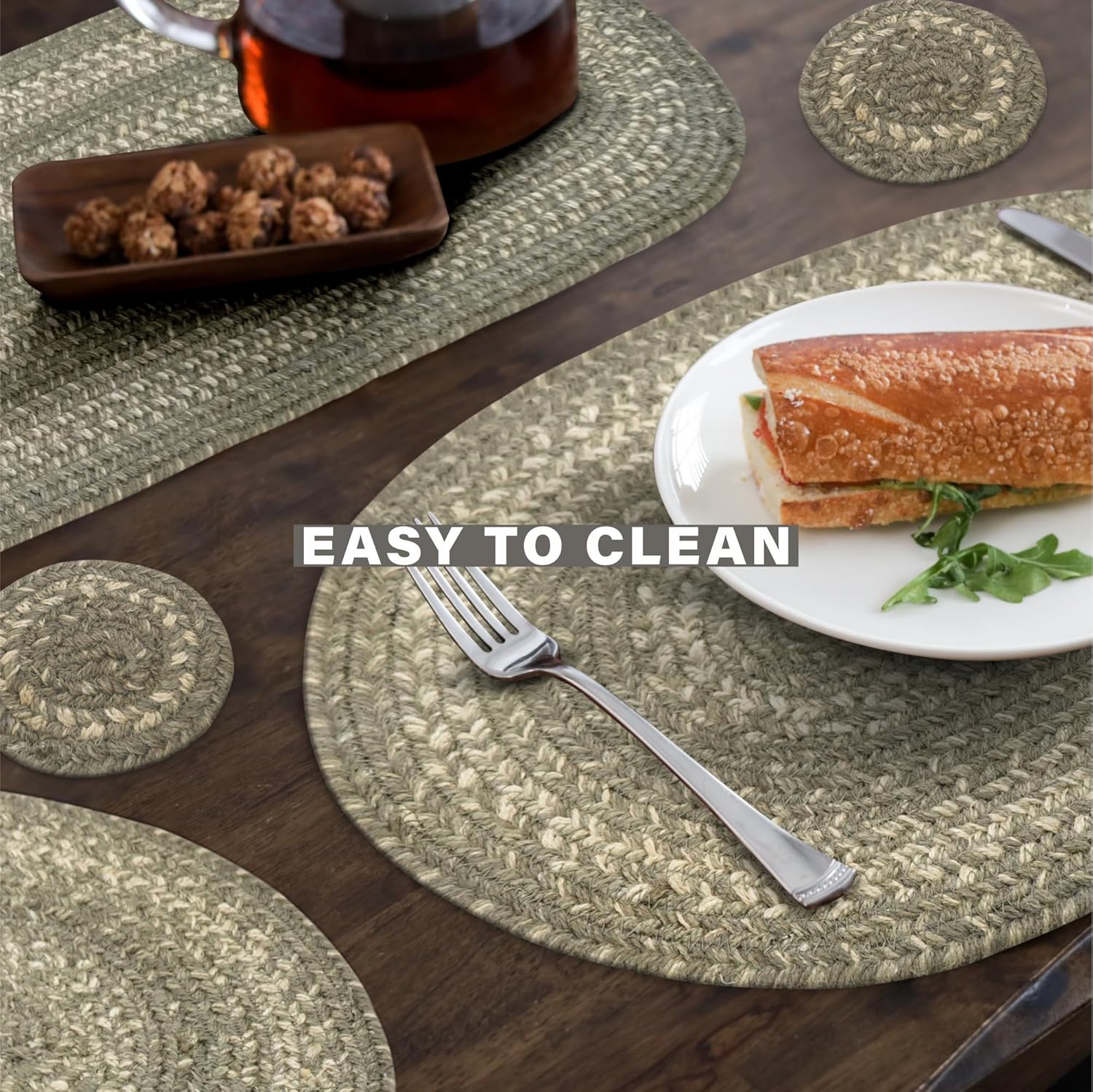 • OVAL TABLE RUNNER FOR ELEGANT DINING: Make your dining more elegant with an oval table runner, a symbol of style and grace. This braided table runner adds a lovely charm to your dinner table, fitting well with any decor. Its oval shape and the blend of gray and off-white colors make a peaceful dining mood. The runner’s textured feel and rich color, made by special dyeing methods, give a deluxe touch, making every meal a treat.