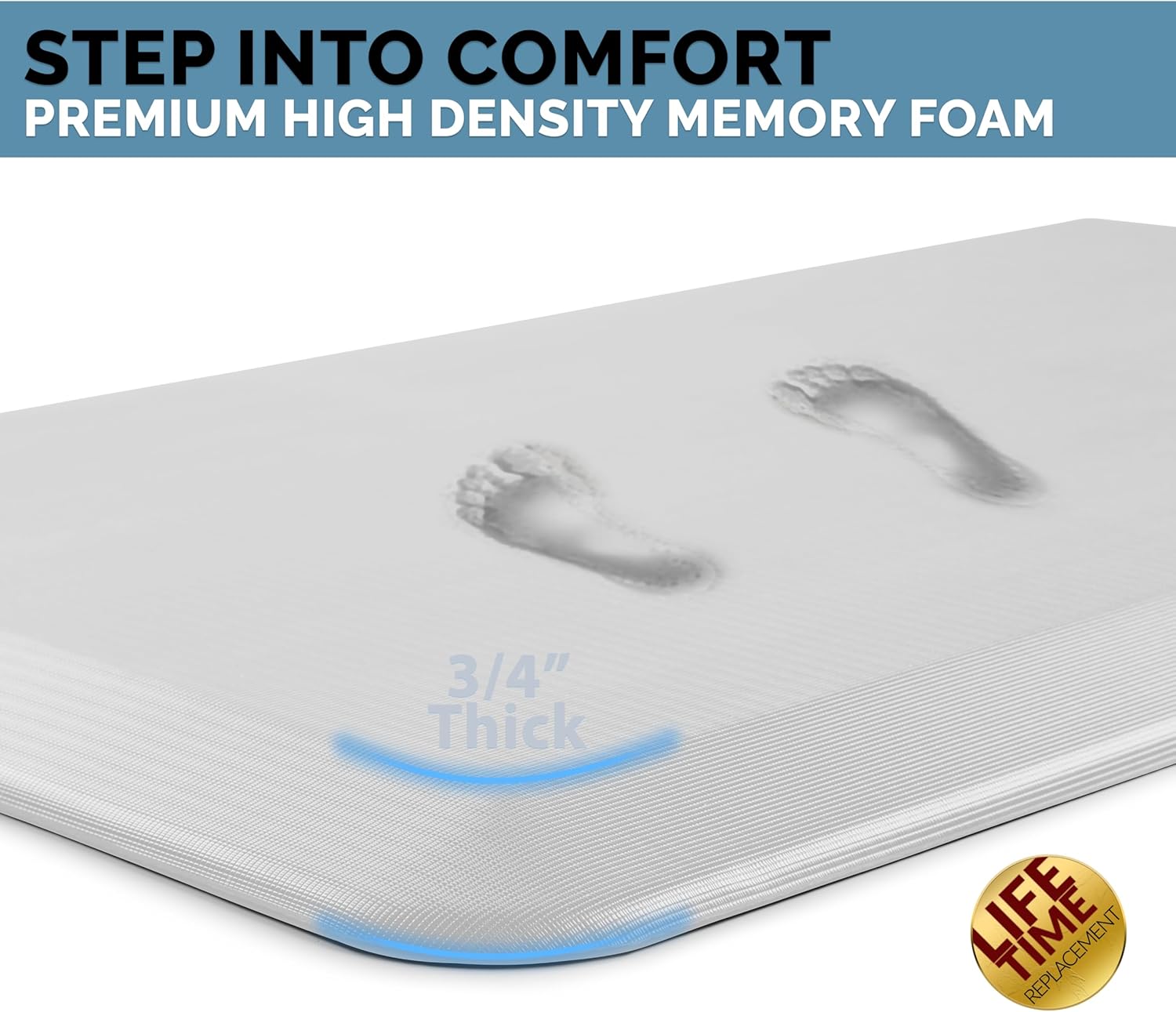 • Premium Quality Construction: The ComfiLife cushioned mat core is made of 3/4 thick, high-density memory foam that reduce discomfort on feet, knees, legs, and back while standing for an extended period. This kitchen mats cushioned anti-fatigue offers exceptional durability and long-lasting support. Perfect for high-traffic areas like the kitchen, office, or garage.