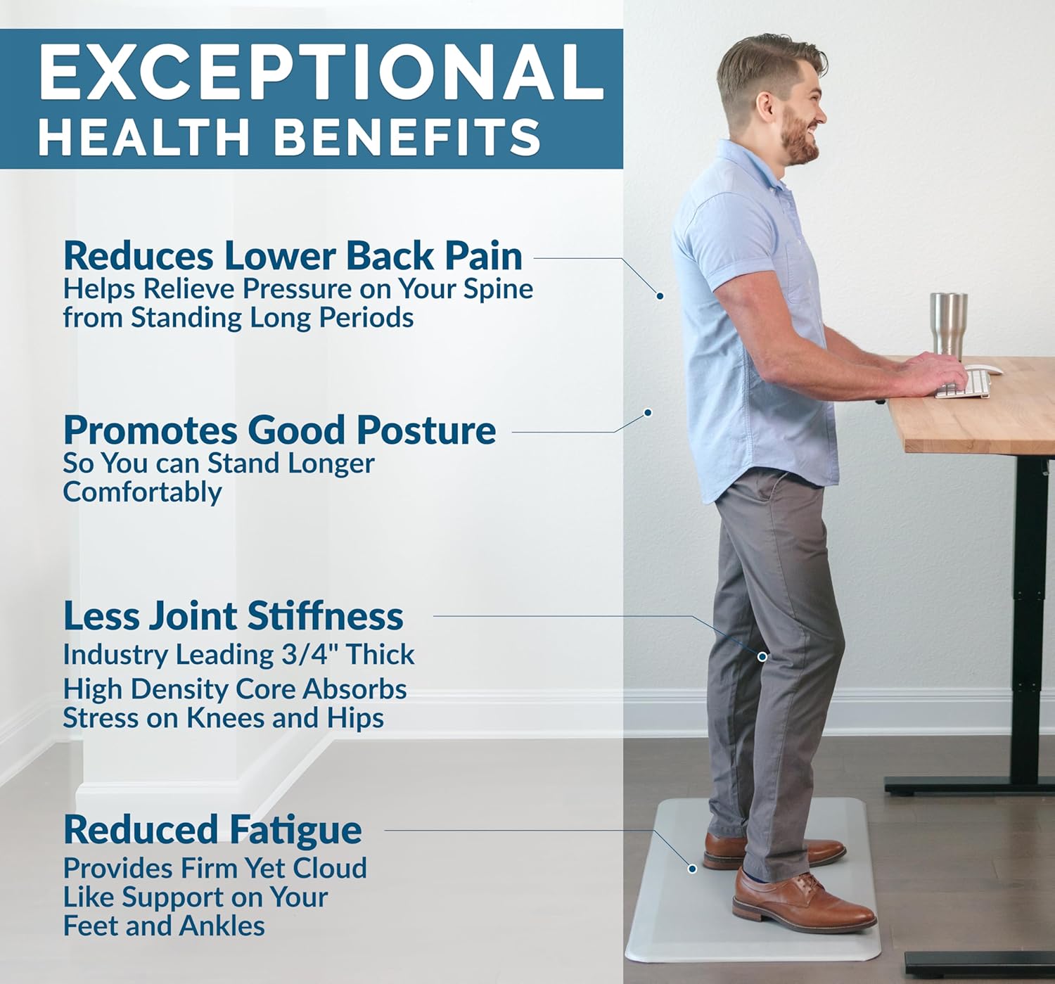 • Slip-Resistant and Stain-Resistant Surface: Stay safe and clean with our anti fatigue mats for kitchen floor that feature a non-slip backing to keep it securely in place. The stain-resistant material is easy to clean and ensures your mat looks new, even with daily use.
