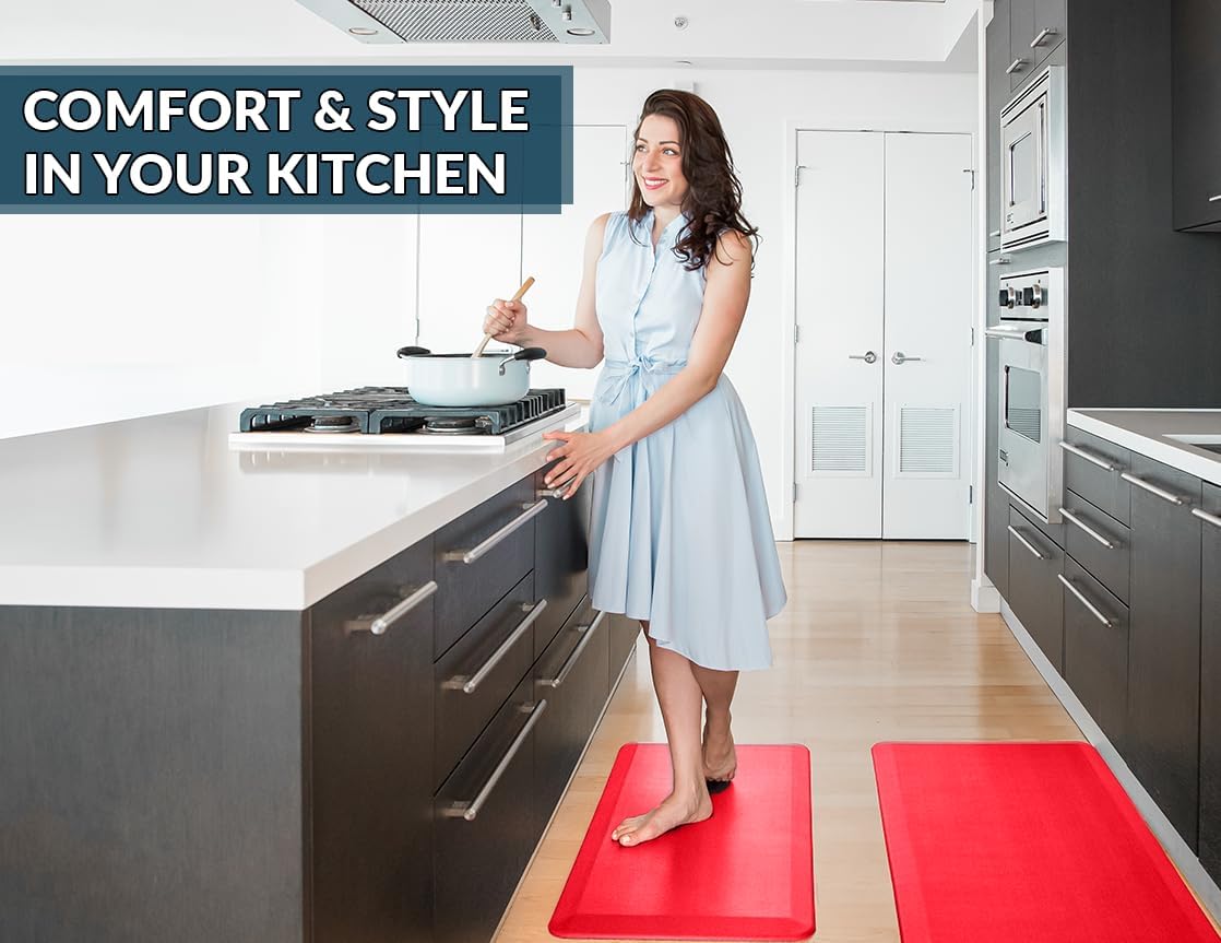 ComfiLife Anti Fatigue Floor Mat – 3/4 Inch Thick Kitchen Mats for Floor, Standing Desk Mat, Kitchen Rug – Comfort at Home, Office – Durable – Stain Resistant – Non-Slip (24" x 70", Scarlet Orange)