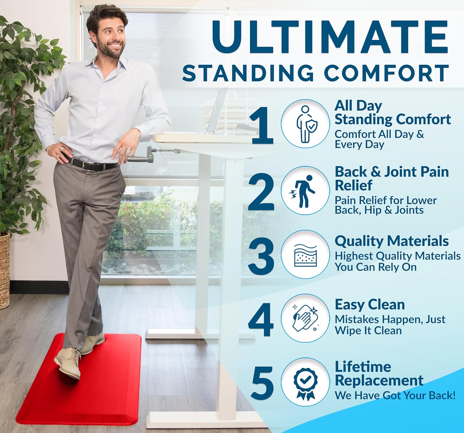 • Easy to Clean and Maintain: Simply wipe down the standing desk mat or anti-fatigue kitchen mat with a damp cloth for quick and easy maintenance, keeping your space clean and comfortable.