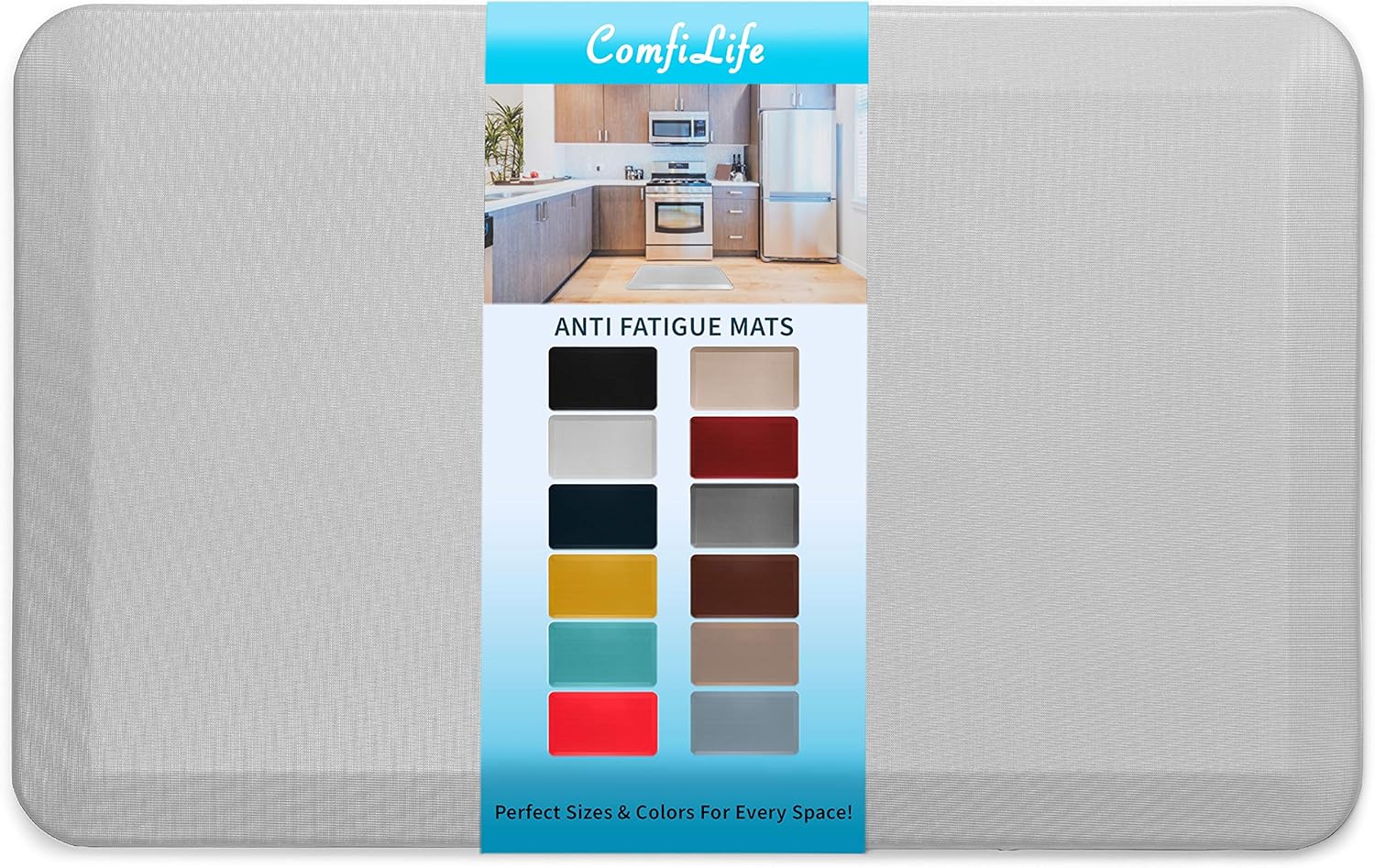 ComfiLife Anti Fatigue Floor Mat – 3/4 Inch Thick Kitchen Mats for Floor, Standing Desk Mat, Kitchen Rug – Comfort at Home, Office – Durable – Stain Resistant – Non-Slip Bottom (20" x 39", Silver)