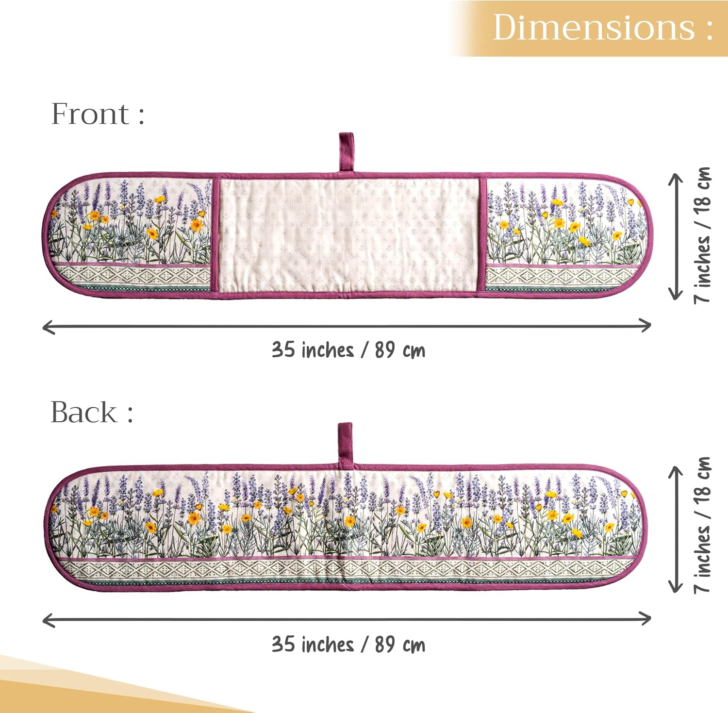 Maison d' Hermine Double Oven Mitts 100% Cotton 7"x35" Double Oven Mitt Heat Resistant BBQ Cooking Gloves with Loop, Baking, Grilling, Home, Kitchen, Handling Hot Pans Spring Summer (Fanny Lavender)