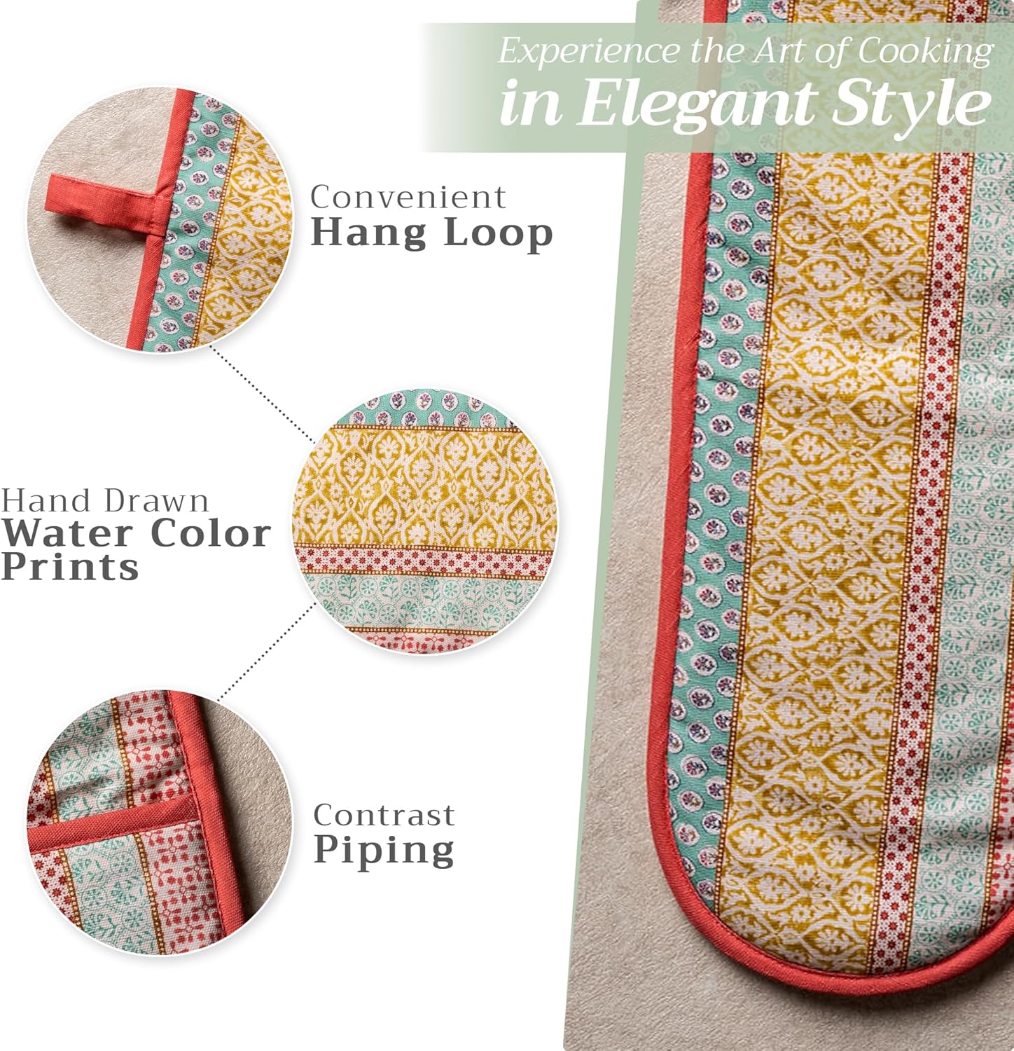 • Package includes: Includes 1 double oven mitt sized 7"x35". Perfect for handling hot cookware safely while adding a touch of European elegance to your kitchen. Designed in Europe and made in India with care
