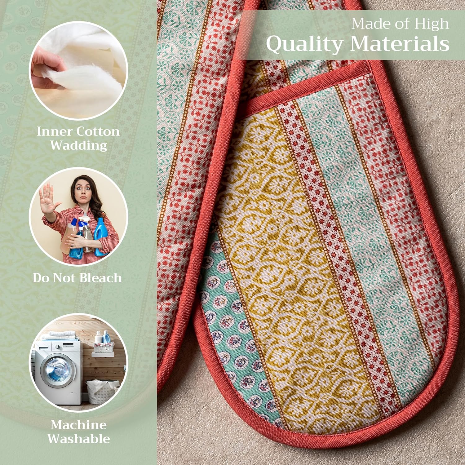 • 100% Quilted cotton: Crafted from premium quilted cotton for superior heat resistance and durability. This double oven mitt offers a soft, flexible grip and protects your hands during baking, roasting, or grilling