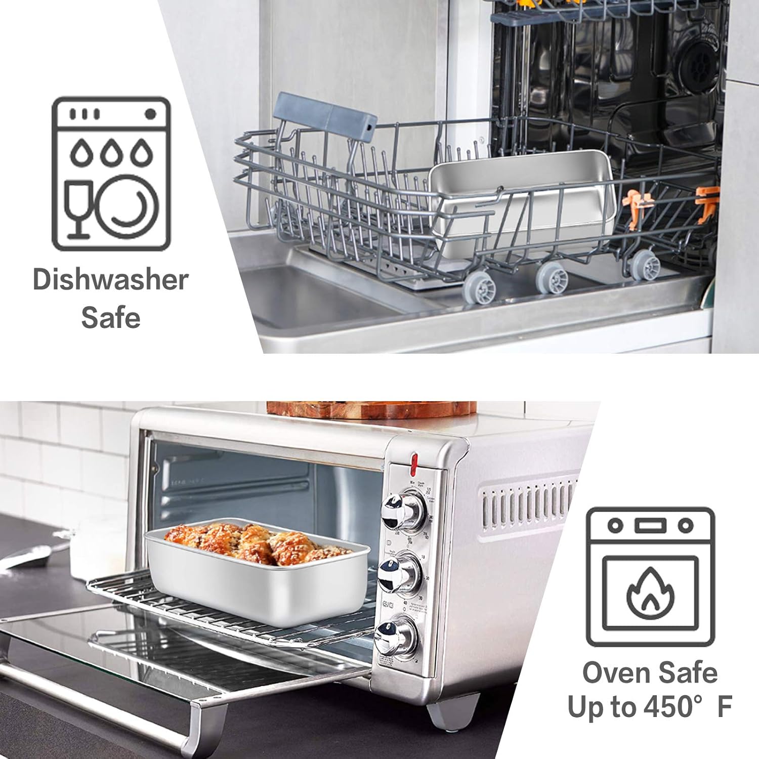 • OVEN & DISHWASHER SAFE - Meatloaf pans oven safe up to 450 ℉, Brushed finished baking pan easily clean up and quickly release, dishwasher safe save your time and less trouble, Recommend to use grease or parchment paper can reduce food sticking