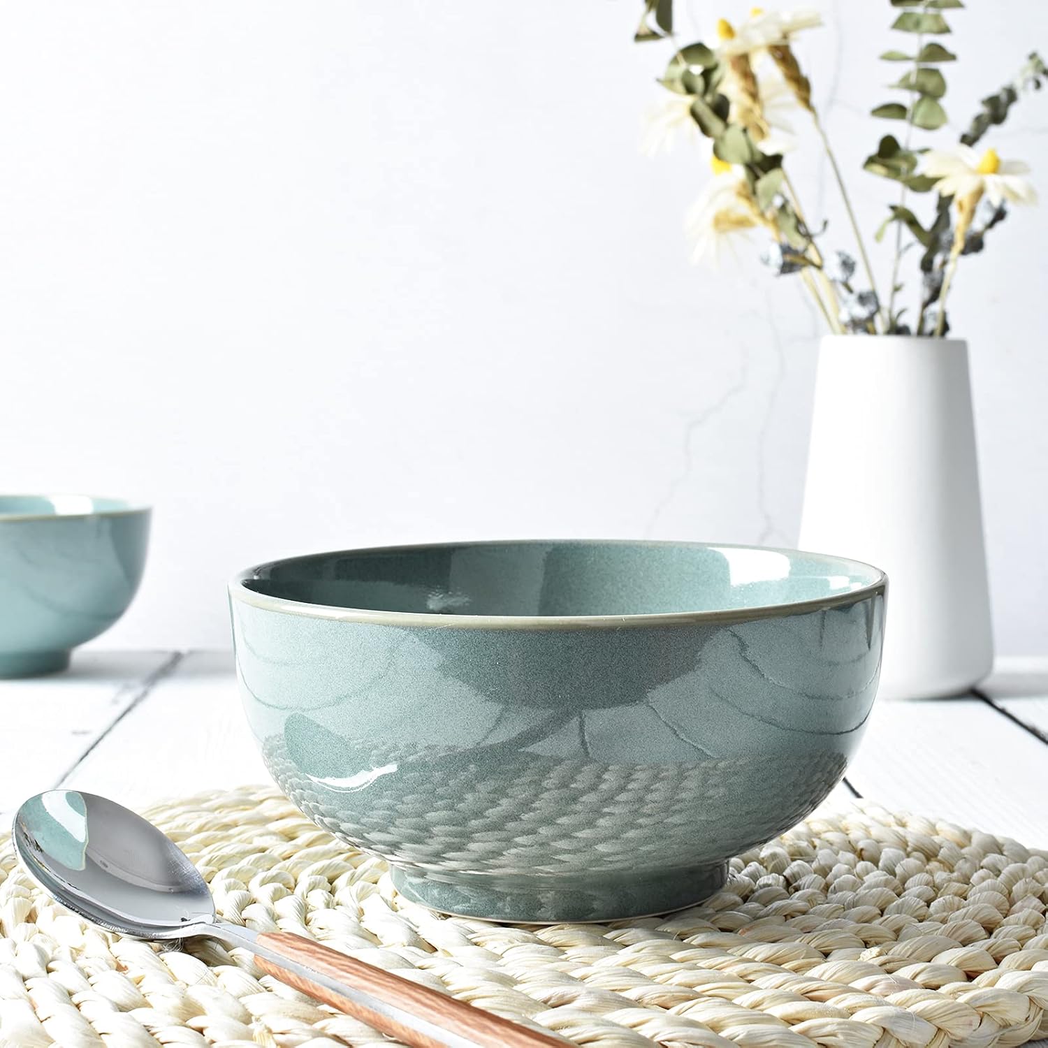 Bosmarlin Ceramic Soup Bowl Set of 4, 24 Oz, Cereal Bowl for Oatmeal, Dishwasher and Microwave Safe (5.75 Inches, Sage Green)