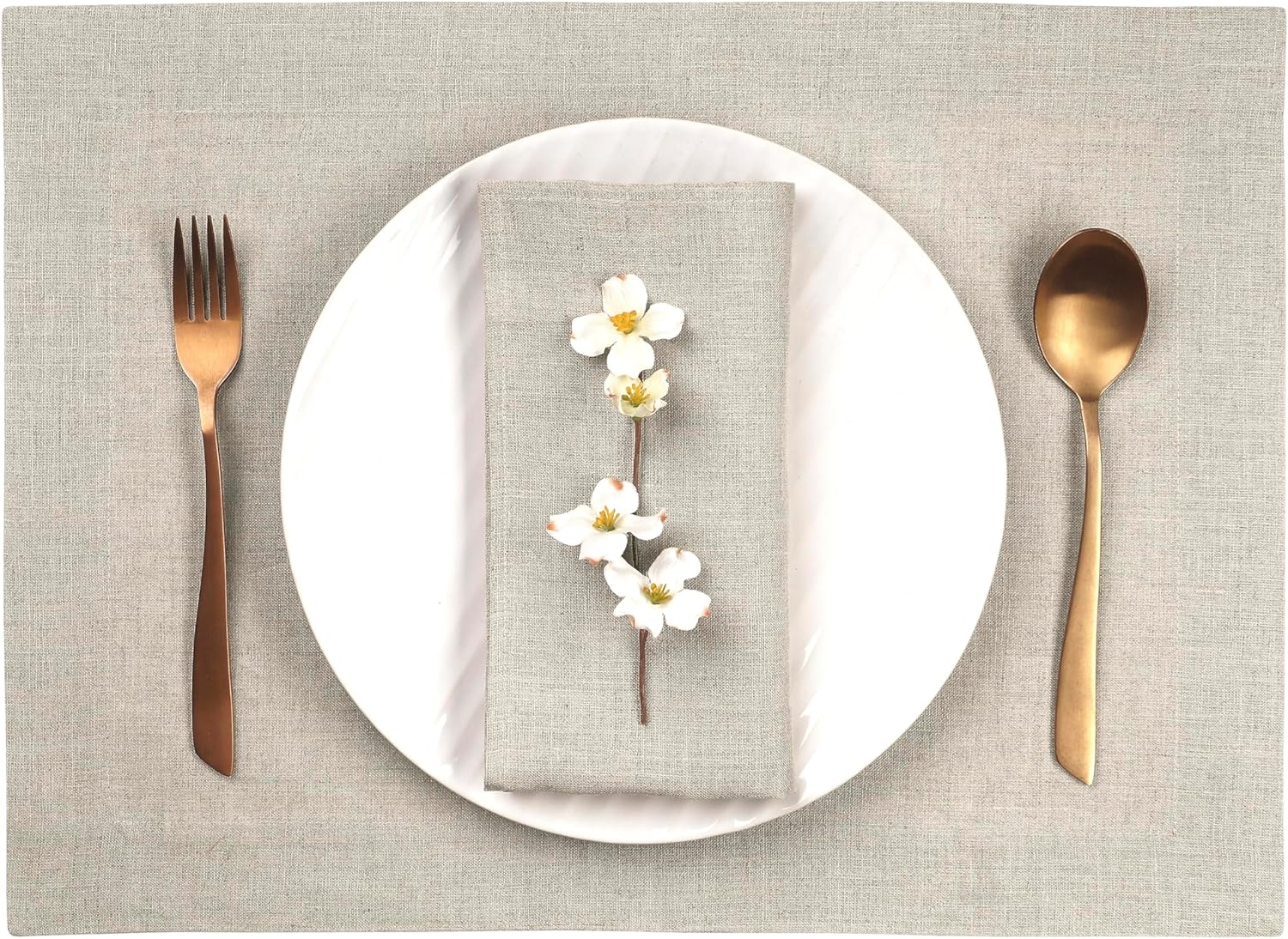 • PREMIUM EUROPEAN LINEN - These natural placemats are made from 100% European flax linen, not blended with cheaper materials like cotton or polyester. Pure linen is an exceptionally durable midweight, hypoallergenic (good for people with allergies) fabric which outperforms cotton in tensile strength and abrasion resistance.