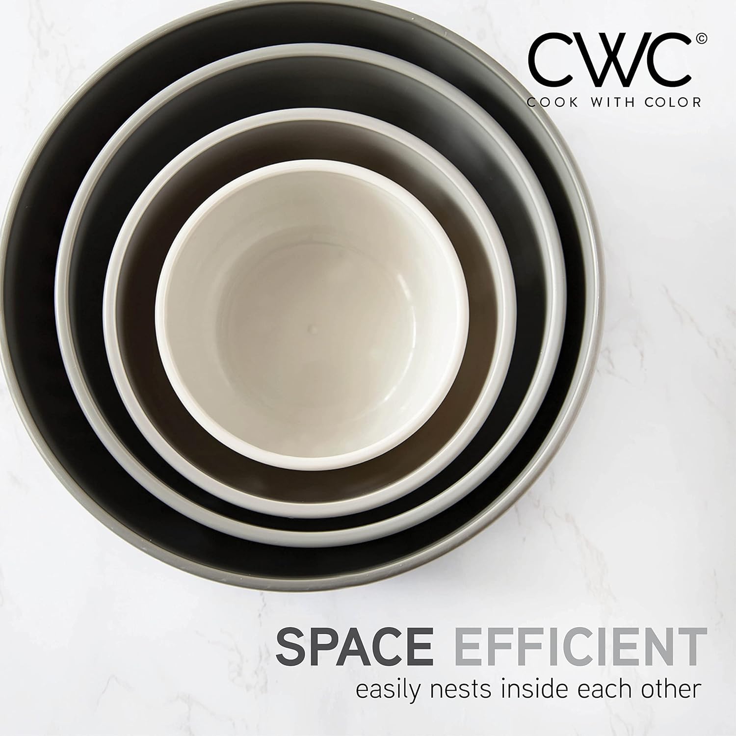 COOK WITH COLOR Prep Bowls with Lids- Wide and Deep Nesting Plastic Small Mixing Bowl Set with Lids, 8 Piece Set - Wide Bowls, Gray