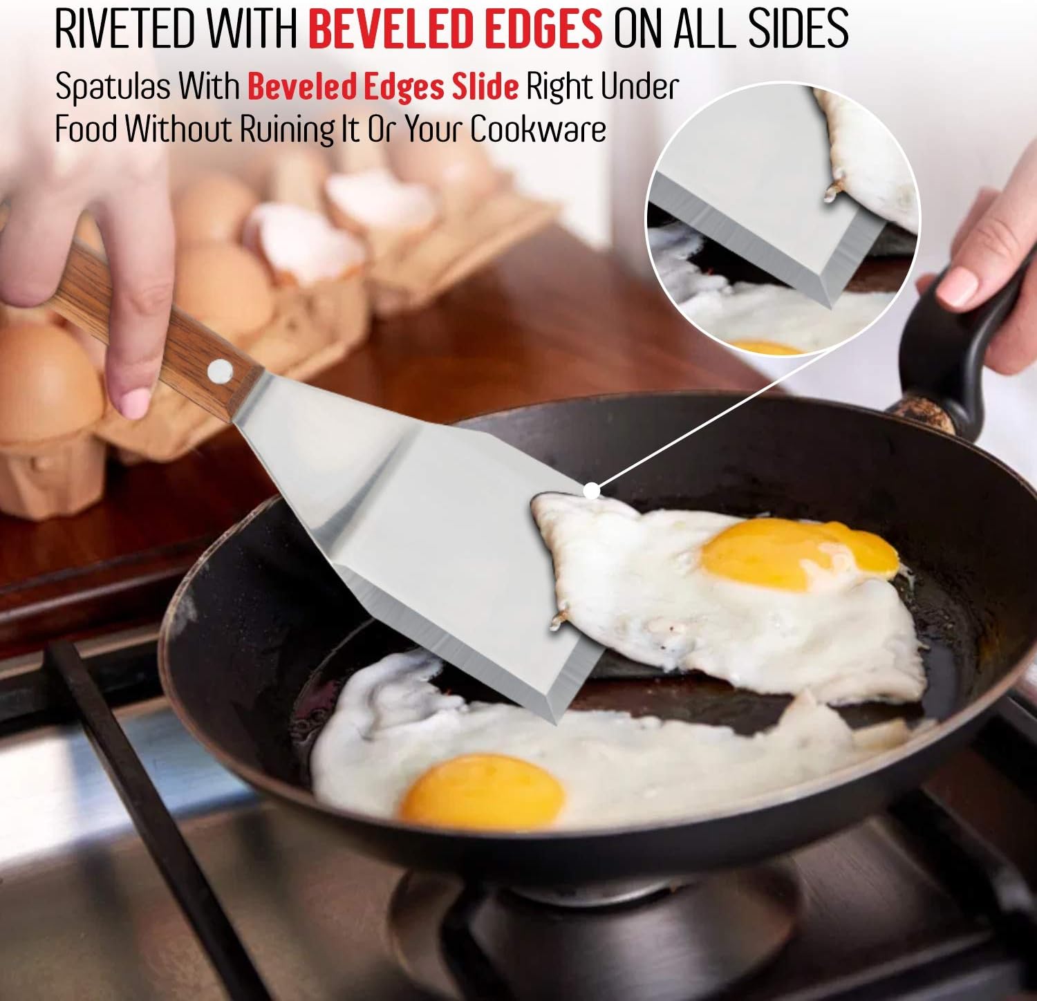 • STYLISH, HEAT-RESISTANT WOOD HANDLE: The 4.5 inch handle on this pancake flipper is made from sleek, stylish merbau wood. This premium wood is highly resistant to heat, so your hands and fingers are out of harm’s way.