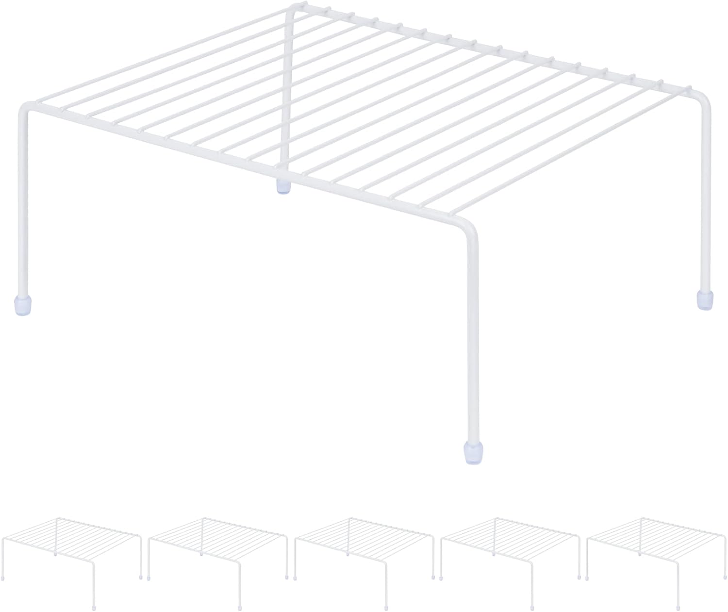 SIBAO Set of 6 Kitchen Cabinet Storage Shelf Rack - (13.1 x 10.2 Inch) /Plastic Feet - Steel Metal - Rust Resistant Finish - Cups, Dishes, Cabinet & Pantry Organization (White)