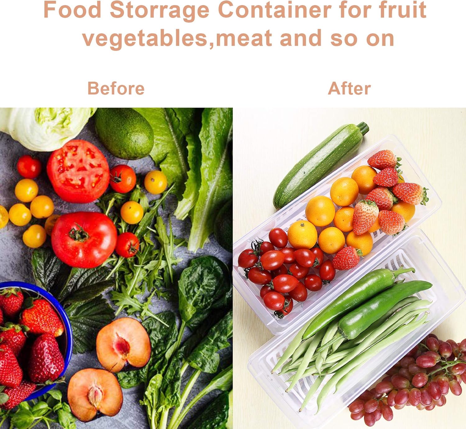 • Multiple Uses:Fridge Organizer Case with Removable Drain Plate, Tray to Keep Fruits, Vegetables, Meat, Fish etc. Out of The Drippings
