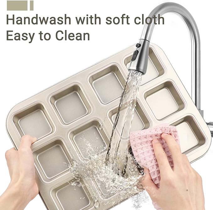 • Great Gift to Baker Friend --- Beasea 12 tube boxes brownie muffin baking pan is nonstick, sturdy, durable, easy to hand clean, easy to use. With it, your baker friend can cook cute perfect chewy brownie mini cakes, treats and many other enjoyable recipe. It can be an adorable choice to be given as a Christmas, thanksgiving or housewarming gift.