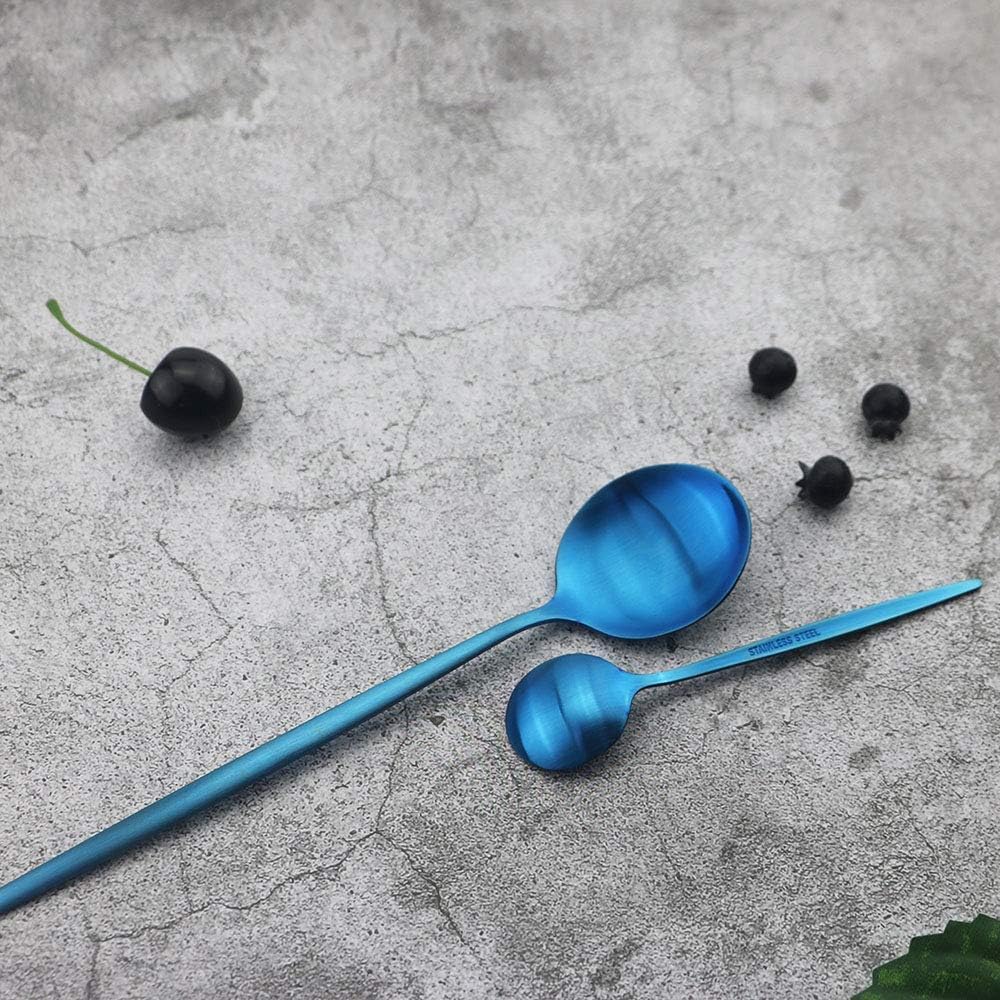 JASHII Silverware Set, 24-Piece Stainless Steel Flatware, Kitchen Utensil Set for 6, Tableware Cutlery - Matte Blue, Dishwasher Safe