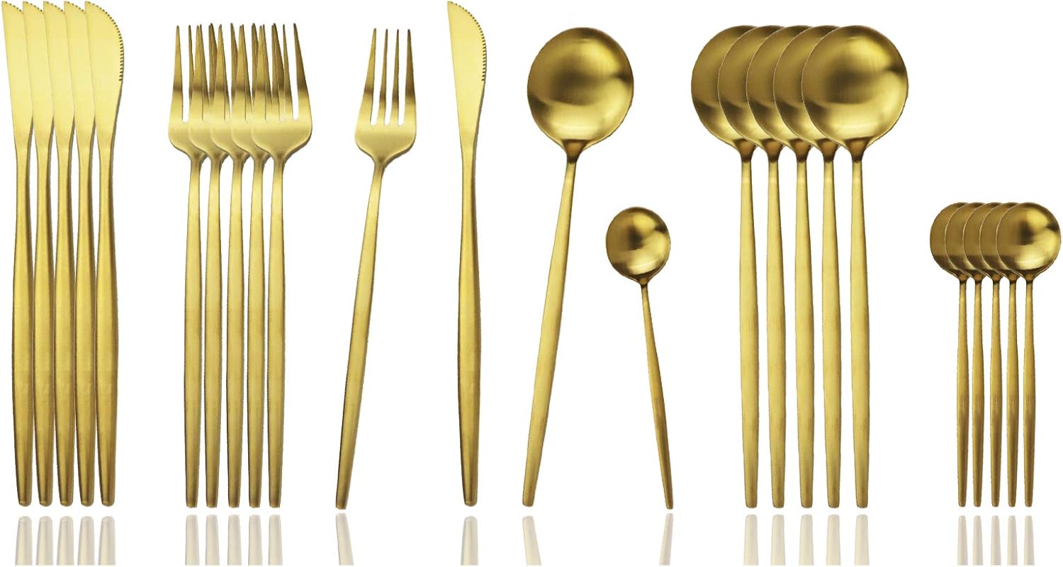 JASHII Silverware Set, 24-Piece Stainless Steel Flatware Set,Kitchen Utensil Set Service for 6,Tableware Cutlery Set for Home, Dishwasher Safe (Matte Gold)