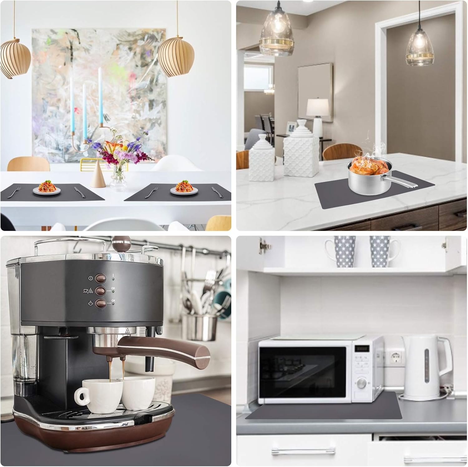 • Size :Sized at 28" x 20"x 0.03"(Length x Width x Thickness), large enough to protect your counter top, it can be placed under the microwave, air fryer, induction stove, toaster oven, coffee maker etc.