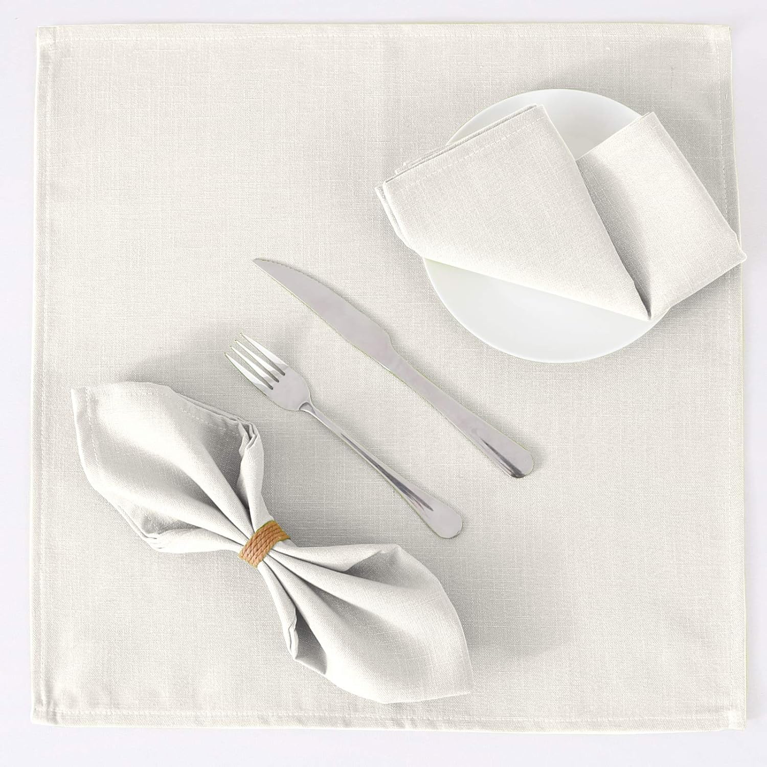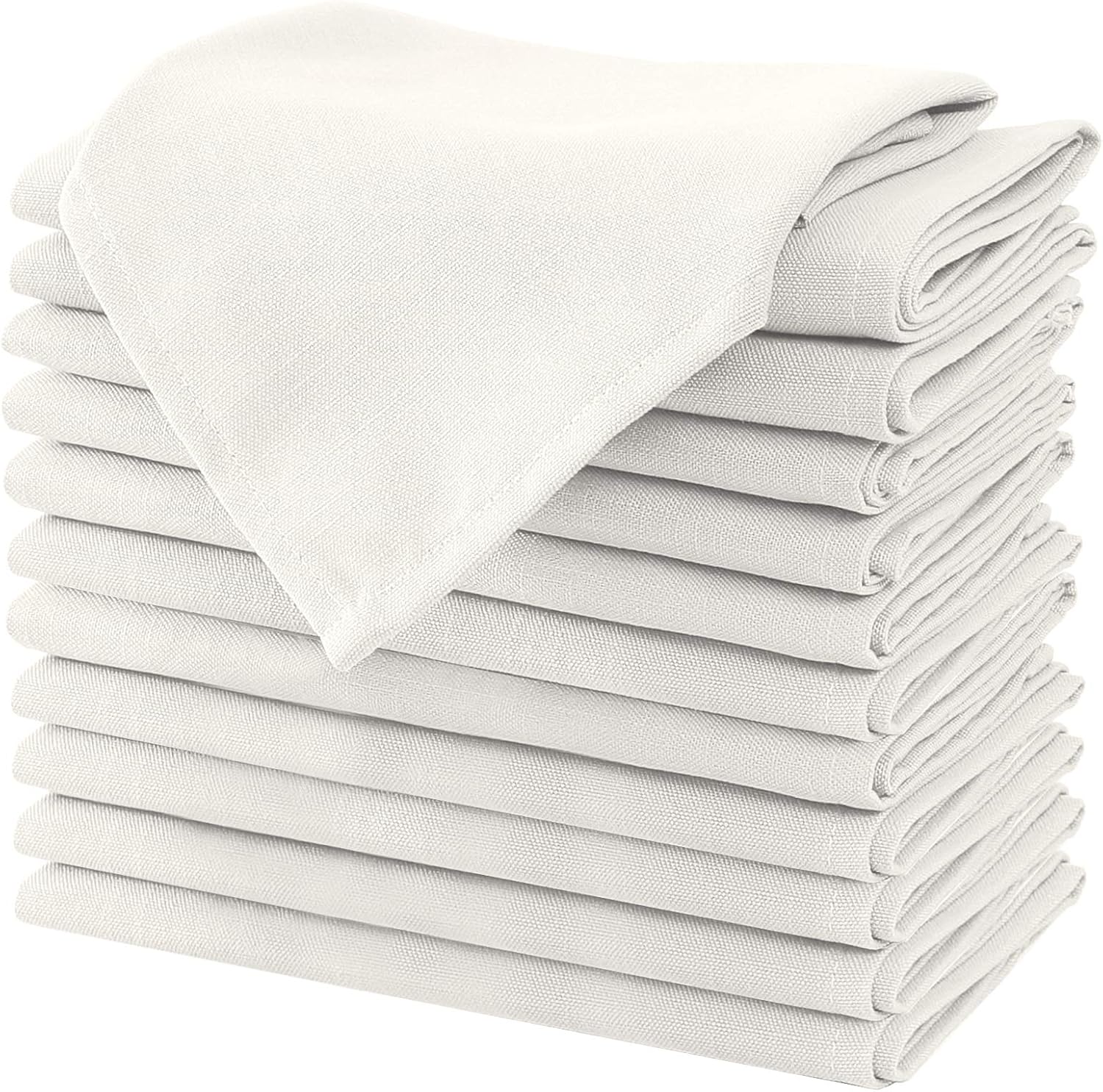 H.VERSAILTEX Cloth Napkins Set of 12 (18" X 18") Linen Textured Dinner Napkins Waterproof Extra Soft Thick Durable Reusable Napkins with Hemmed Edges for Dinners, Weddings and Everyday Use, Ivory