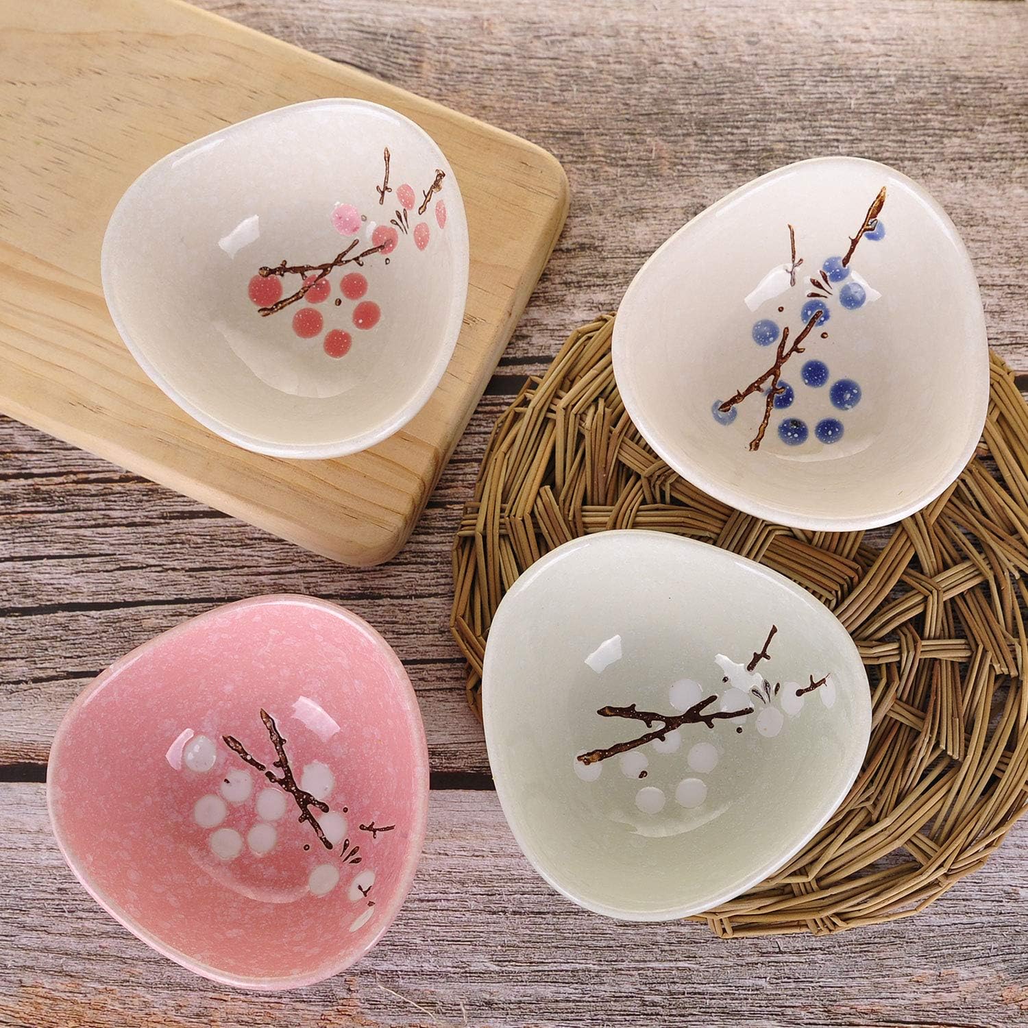 VanEnjoy Ceramic Japanese Dipping Bowl Soy Sauce Seasoning Dishes Soy Dipping Sauce Dishes set of 4, Floral pattern with Flower shape (leaves) (fruit)