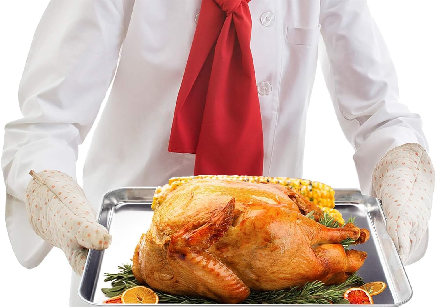 • EASY TO CLEAN: Deep full sides all around keep food contained and prevent liquid from flowing everywhere to keep your oven neat; the cookie sheet is easy clean up, dishwasher safe to save your labor
