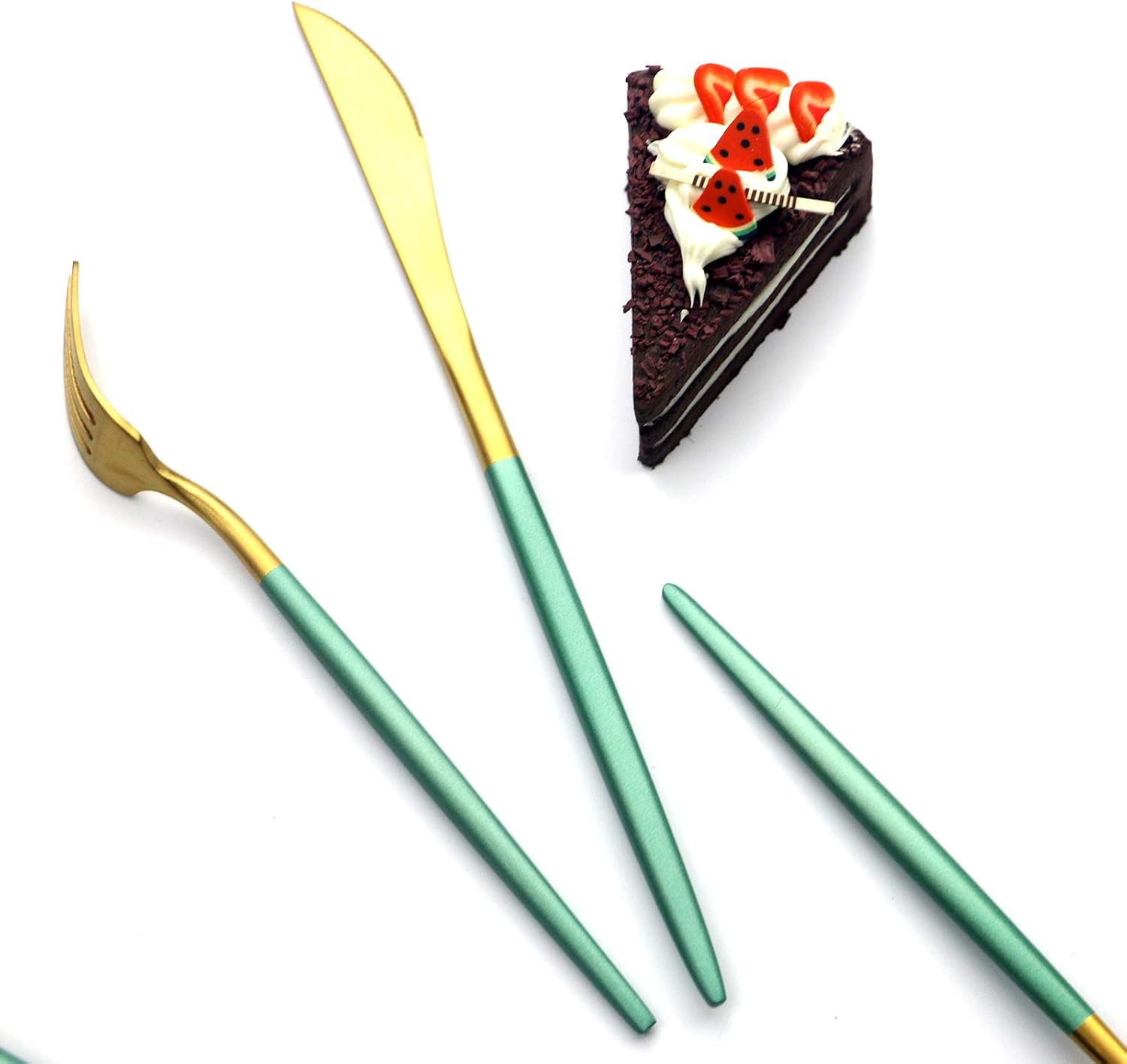 • ECO-FRIENDLY: Simple classic modern design would match well with your existing cutlery and elevate everyday meals into a fine dining experience,The handle is a eco-friendly color electroplating frosted appearance which is different from the common silver handle,special and comfortable,rust proof, high hardness.