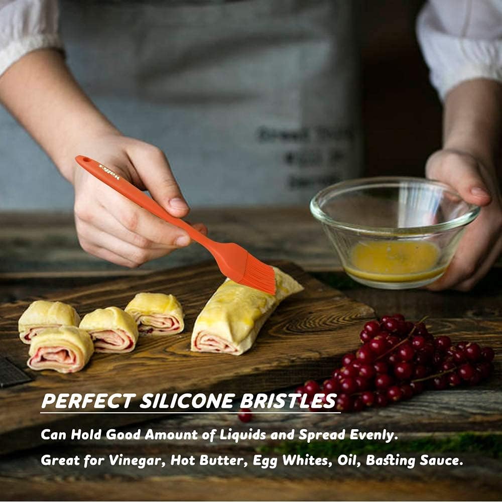 Walfos Silicone Basting Pastry Brush, Heat Resistant Pastry Brush Set, Strong Steel Core and One-Pieces Design, Perfect for BBQ Grill Kitchen Cooking, BPA Free and Dishwasher safe, 2 Pcs (orange)