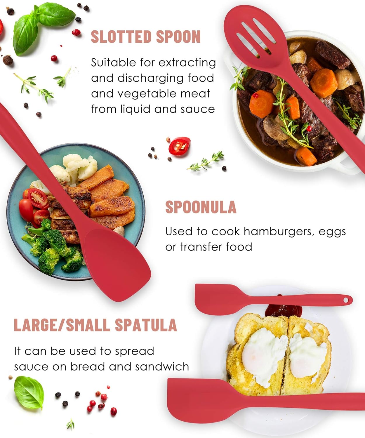 • ❤【High Heat Resistant&Avoid The Melt】Non-stick Cooking Utensils can withstand temperatures ranging from -22°F/-30°C to 392°F/200°C. Featuring non-scratch and softness, which extend the life of all your kitchen pans. No longer worry silicone will melt if accidentally leave these kitchen utensils in the pot for a while.