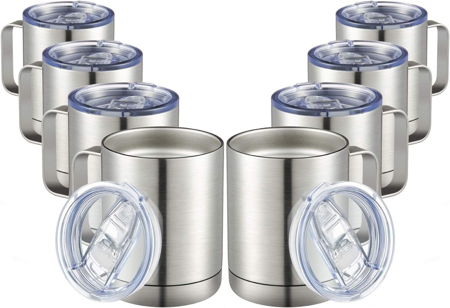 MEWAY 12oz Coffee Mug With Handle 8 Pack Bulk,Stainless Steel Insulated Travel Tumblers With Sliding Lid,Double Wall Vacuum Camping Cup for Hot & Cold Drinks Tea (Sliver,Set of 8)