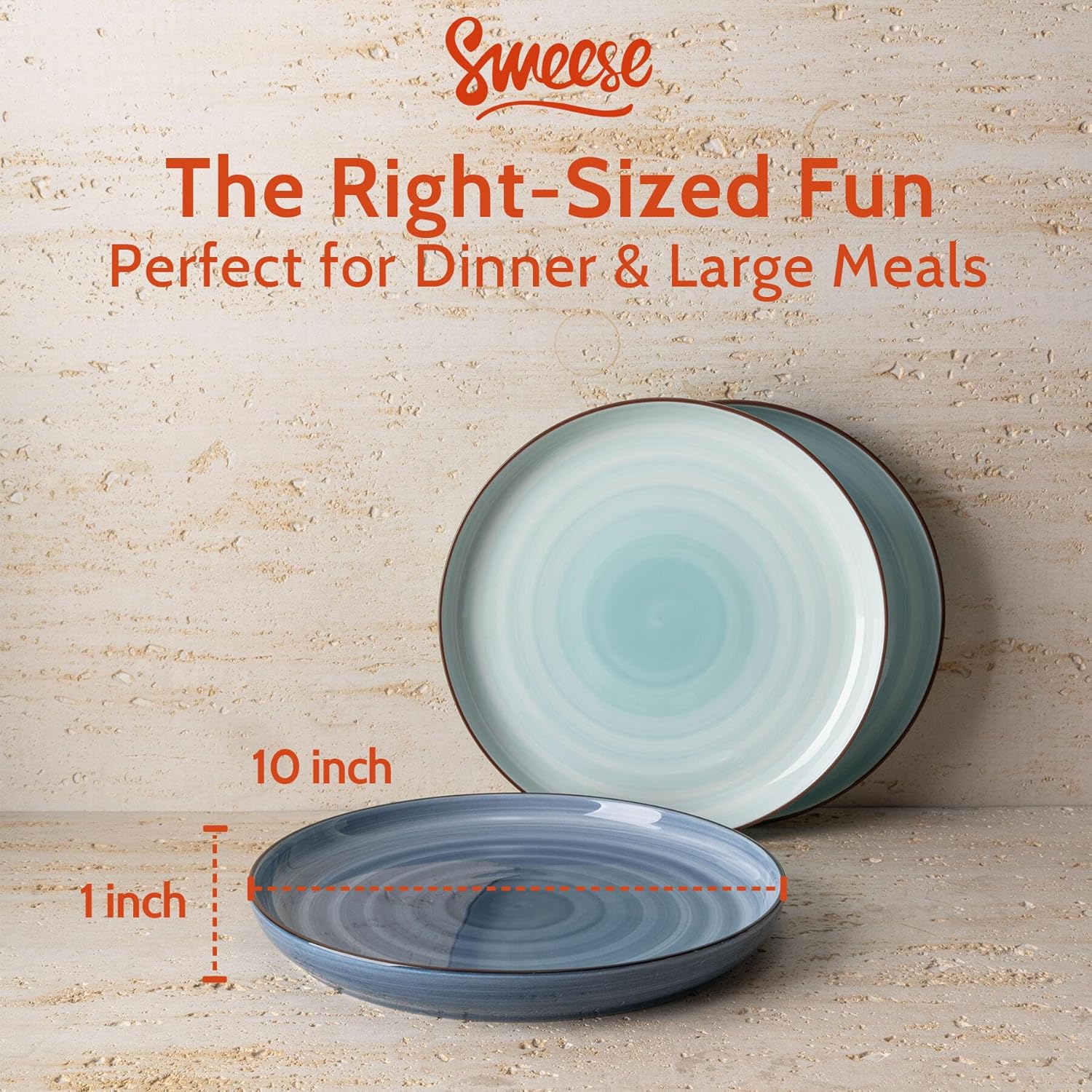 Sweese Porcelain Dinner Plates 10 Inch, Set of 6, Multi-Colored Round Plates for Lunch, Dinner, Parties, Microwave Dishwasher Safe