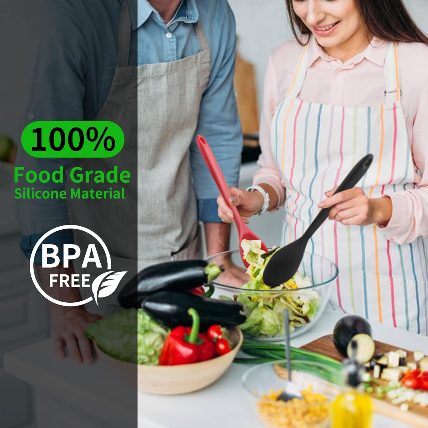 2 Pcs Silicone Nonstick Mixing Spoon, Silicone Spoons for Cooking Heat Resistant, Cooking Utensil for Kitchen Cooking Baking Stirring Serving (Red,Black)