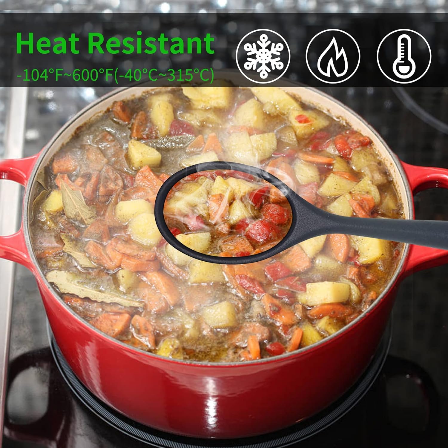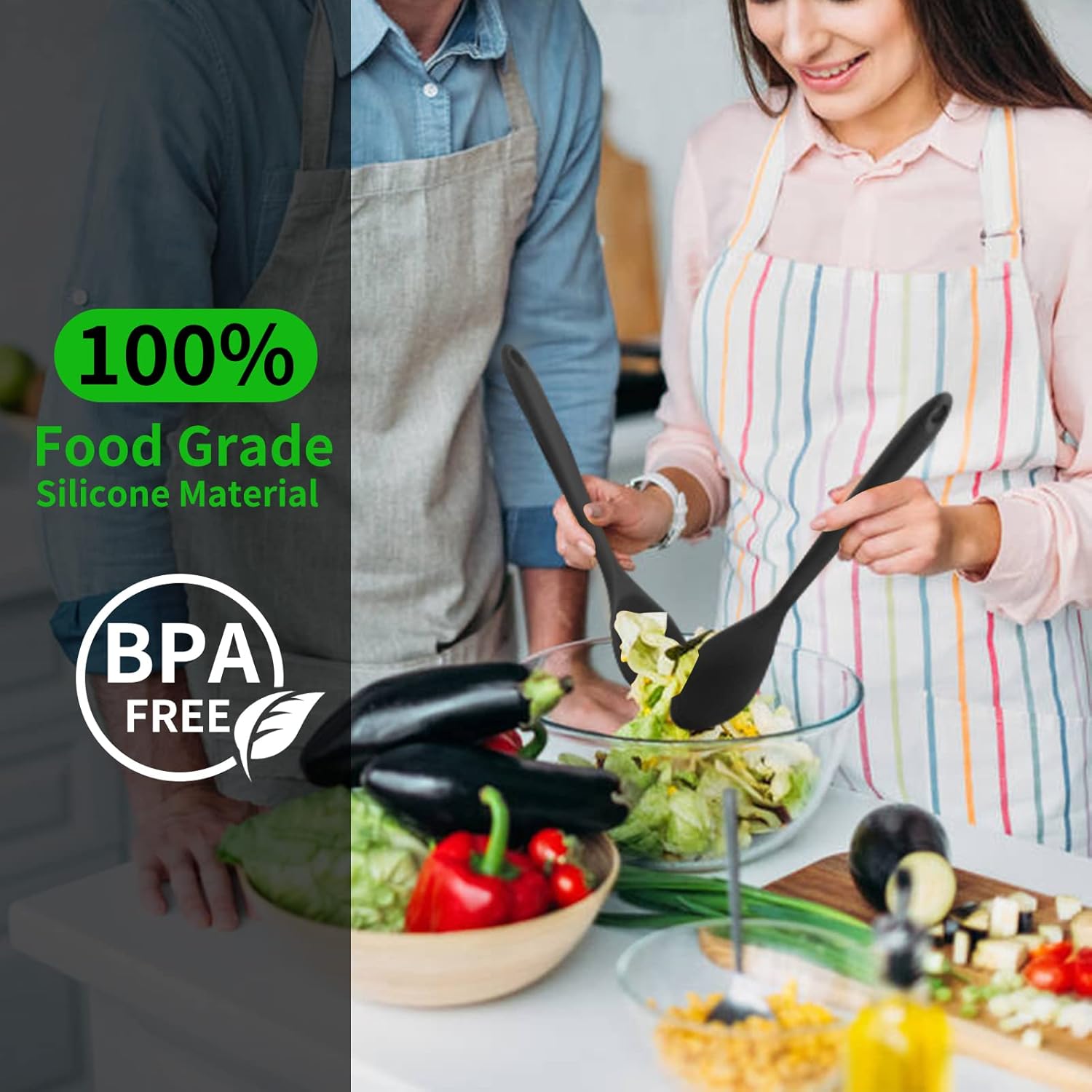 2 Pcs Silicone Nonstick Mixing Spoon, Silicone Spoons for Cooking Heat Resistant, Cooking Utensil for Kitchen Cooking Baking Stirring Serving (Black)