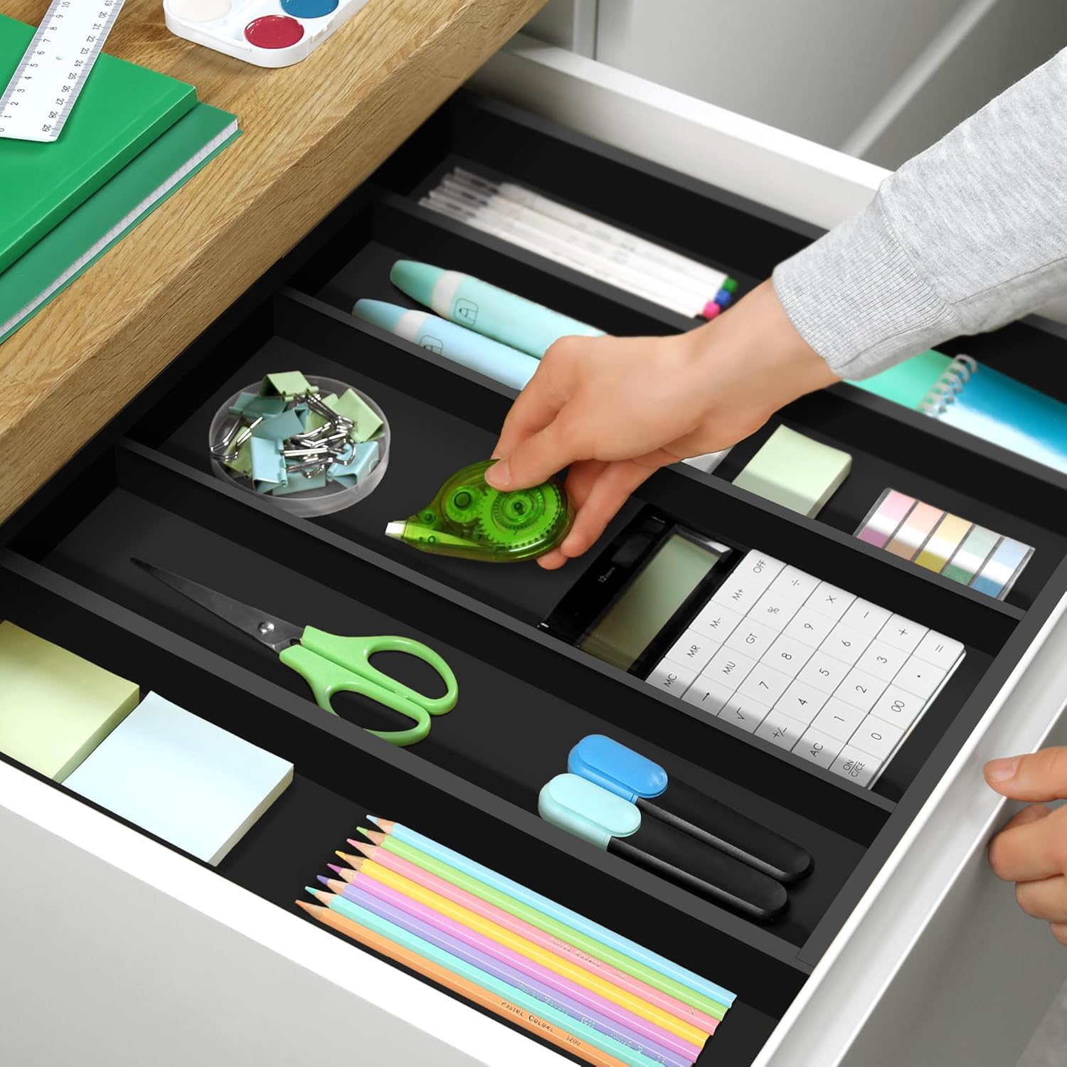 • 🛡 𝑫𝑬𝑪𝑳𝑼𝑻𝑻𝑬𝑹 𝒀𝑶𝑼𝑹 𝑺𝑷𝑨𝑪𝑬 𝑭𝑶𝑹 𝑩𝑬𝑻𝑻𝑬𝑹 𝑷𝑬𝑨𝑪𝑬 𝑶𝑭 𝑴𝑰𝑵𝑫: A big part of procrastination has to do with having a chaotic work environment. Having a neat, clean, & organized work area is important when wanting to become productive & efficient. The drawer organizers & storage from RCW work well in other areas of the home, perfect for storing & organization of office supplies like pens, pencils, post-its, etc. It may also be used for art supplies, your crafting drawer, and even your sewing corner
