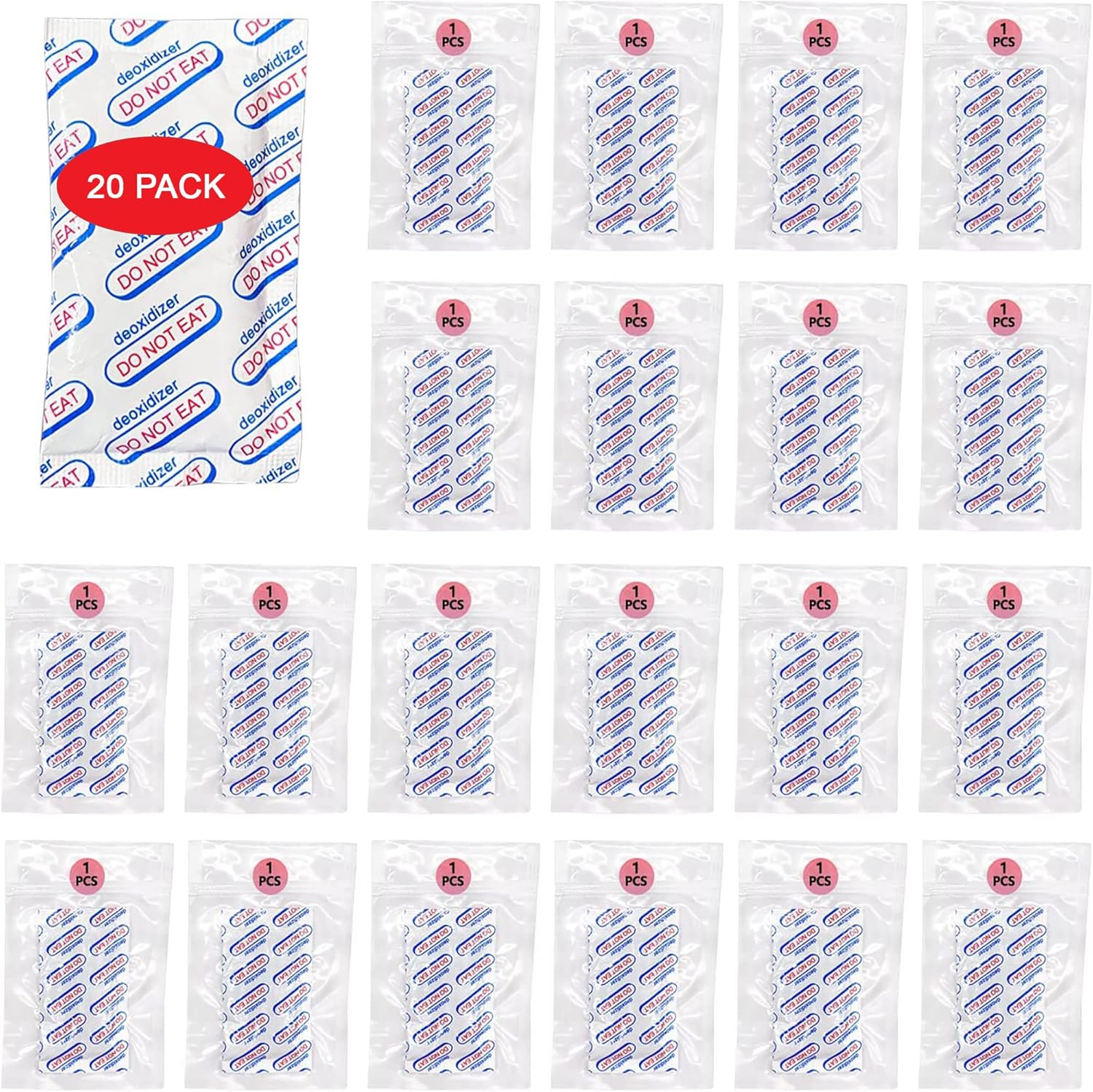 2000cc oxygen absorbers for food storage (20 Pack in individual Vacuum Bag), food grade oxygen absorbers packets for Home Made Jerky and Long Term Food freshness