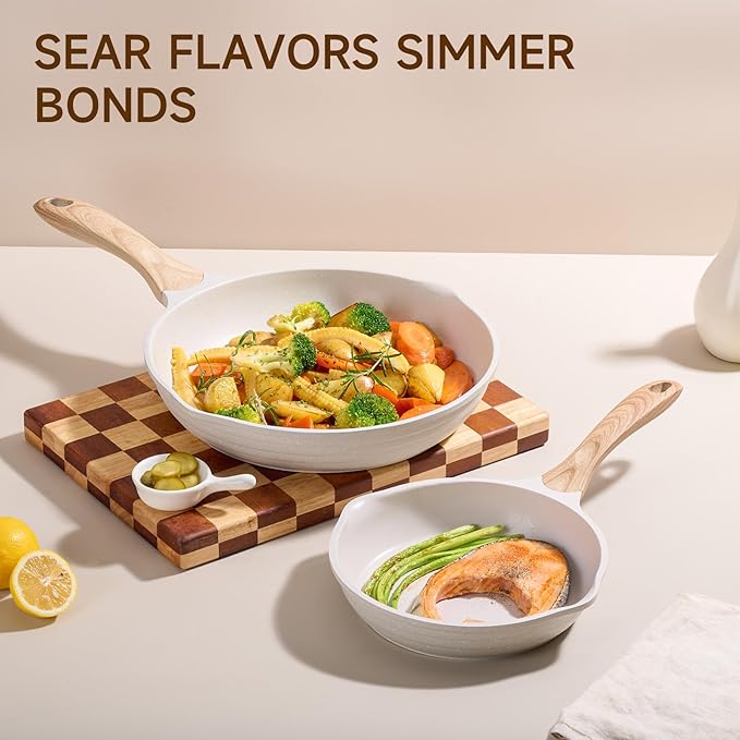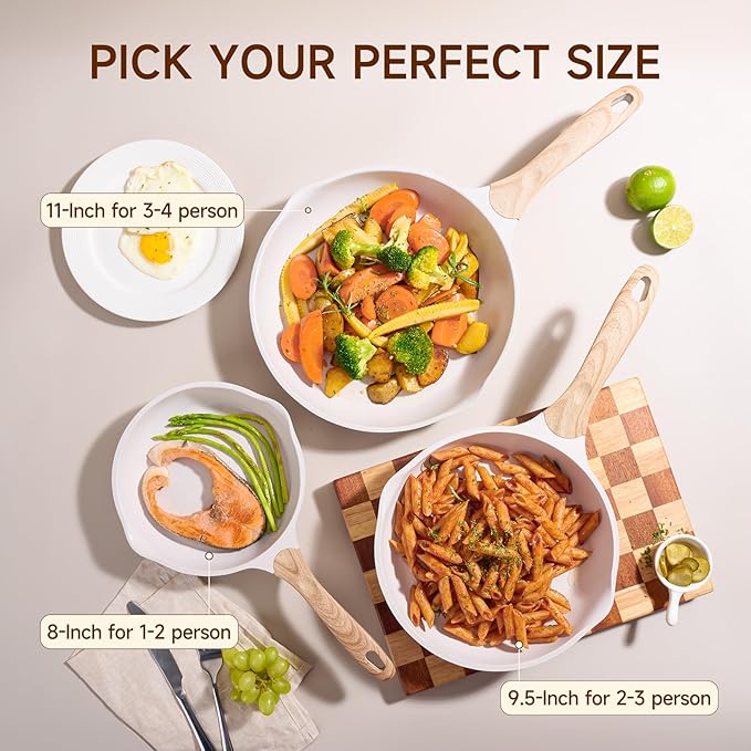 • 【Health & Safe Nonstick Coating】Our Marble stone non-stick coating outperforms traditional nonstick pots and pans surfaces. Independently certified 100% free from PFOA/PFOS/lead/cadmium and other harmful chemicals, ensuring your daily cooking is always safer and healthier