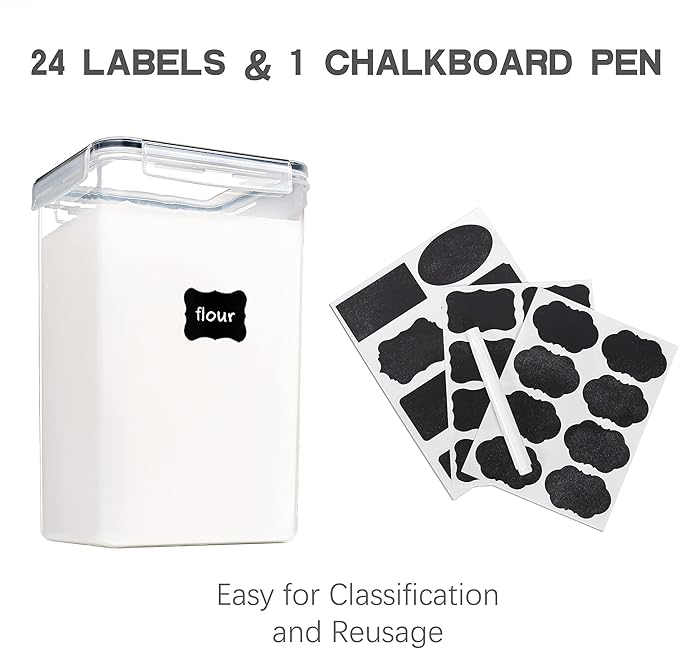 • Suitable Storage Size ---- Includes 2pcs 6.5L extra-large pantry storage containers, especially ideal for 8lbs of flour. Also Great for other bulk food, such as beans, grains, cereal, rice, oatmeal, tea, pasta, staples, spices, snacks, crackers, chips, and cookies. No messy half-opened bags bother you anymore.