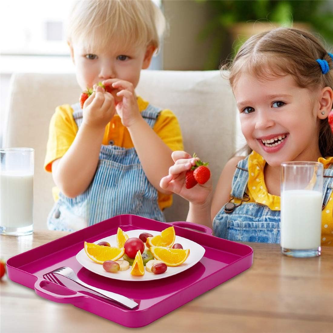 Square Serving Trays with Handles Melamine Hot Pink 12.5x12.5 Inch Spill Proof Kitchen Eating Trays Set of 2 for Cafeteria Cafe Food Appeizer Dessert Snack Dinner Lunch Breakfast,TR12-02