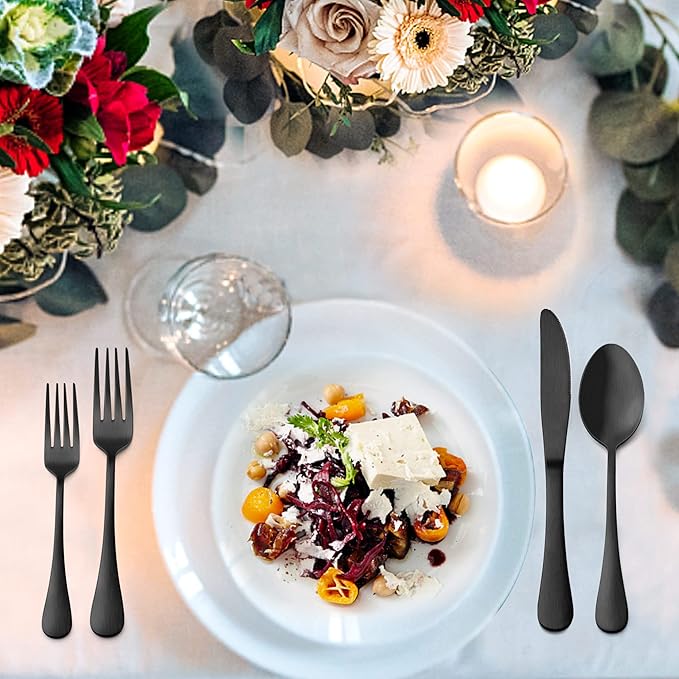 • Superior quality, forks and spoons silverware set is made of premium stainless steel, resist rust and corrosion, vacuum electroplate technology ensures long lasting of black finish, will not chip off or fade its color, durable to serve you well for years to come