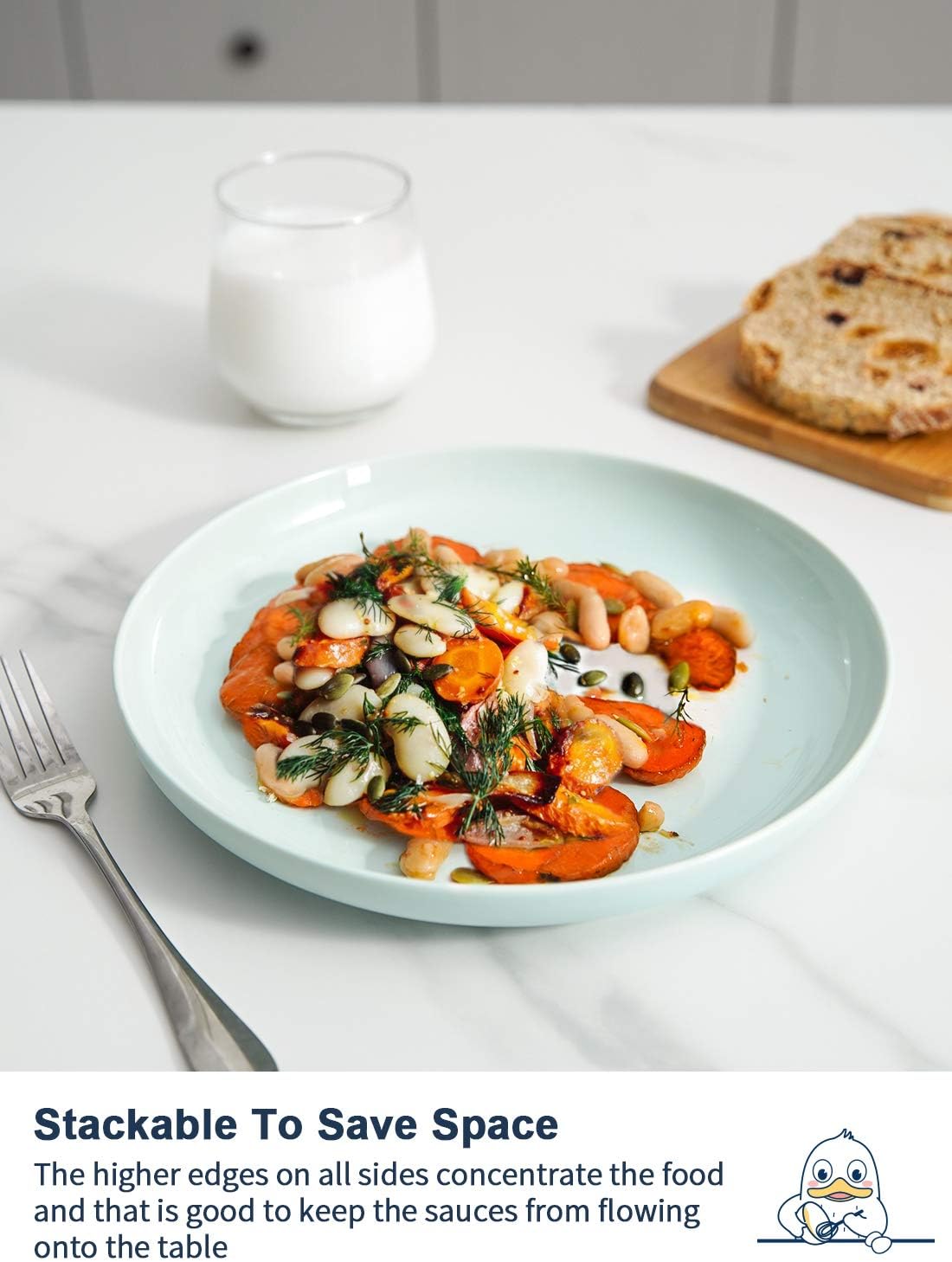 LE TAUCI Dinner Plate 9 inch, Ceramic Salad plate sets for Pasta, Risotto, Fluffiest, Pancakes, Dishwasher Microwave Oven Safe, set of 4, Sky blue