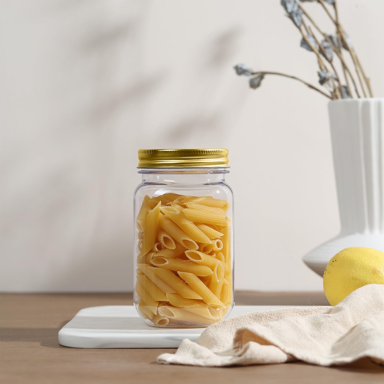 novelinks 16 oz Clear Plastic Jars with Screw-On Lids - BPA-Free Refillable Storage Containers for Slime, Food, Crafts, Kitchen & Household Use (10 Pack,Gold)