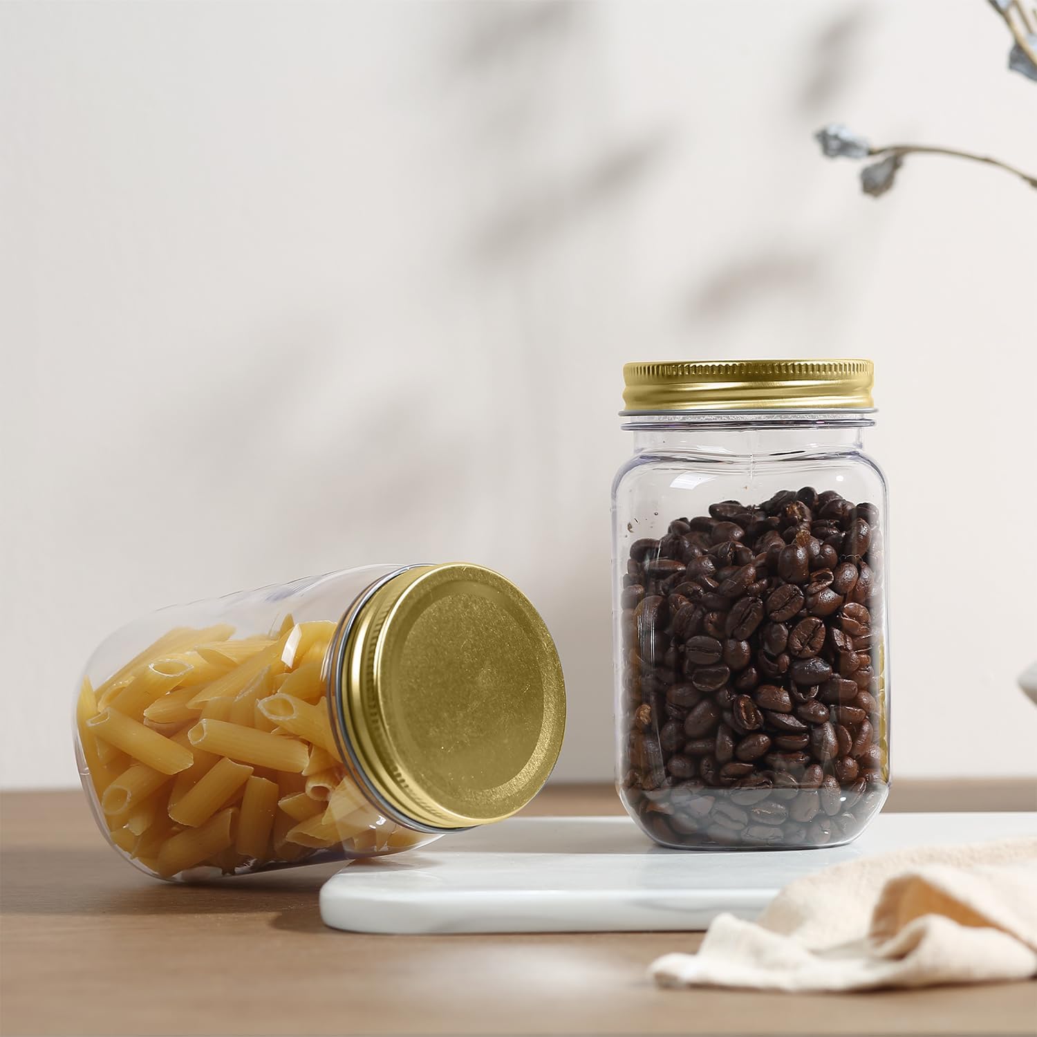 novelinks 16 oz Clear Plastic Jars with Screw-On Lids - BPA-Free Refillable Storage Containers for Slime, Food, Crafts, Kitchen & Household Use (20 Pack,Gold)