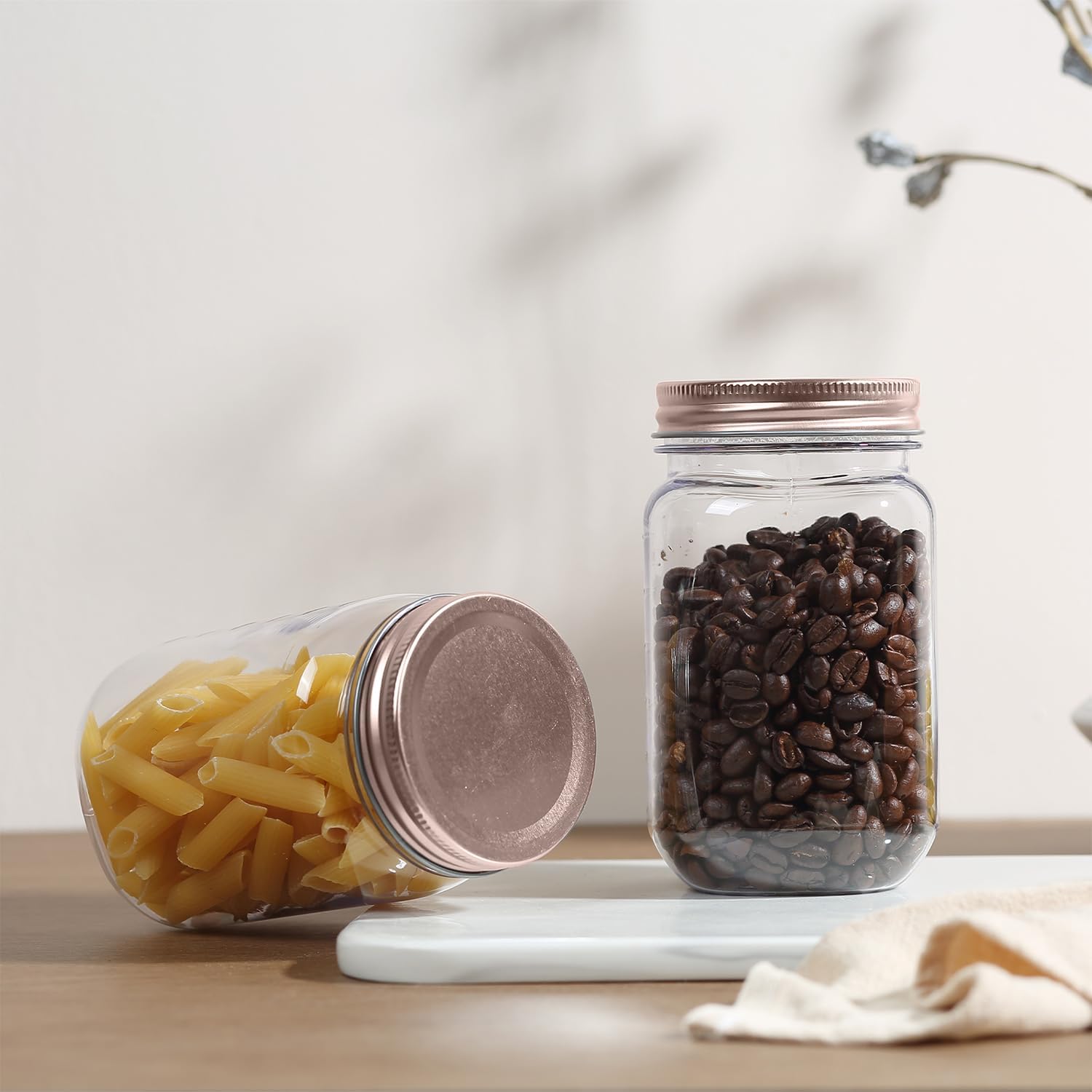 novelinks 16 oz Clear Plastic Jars with Screw-On Lids - BPA-Free Refillable Storage Containers for Slime, Food, Crafts, Kitchen & Household Use (10 Pack,Rose Gold)