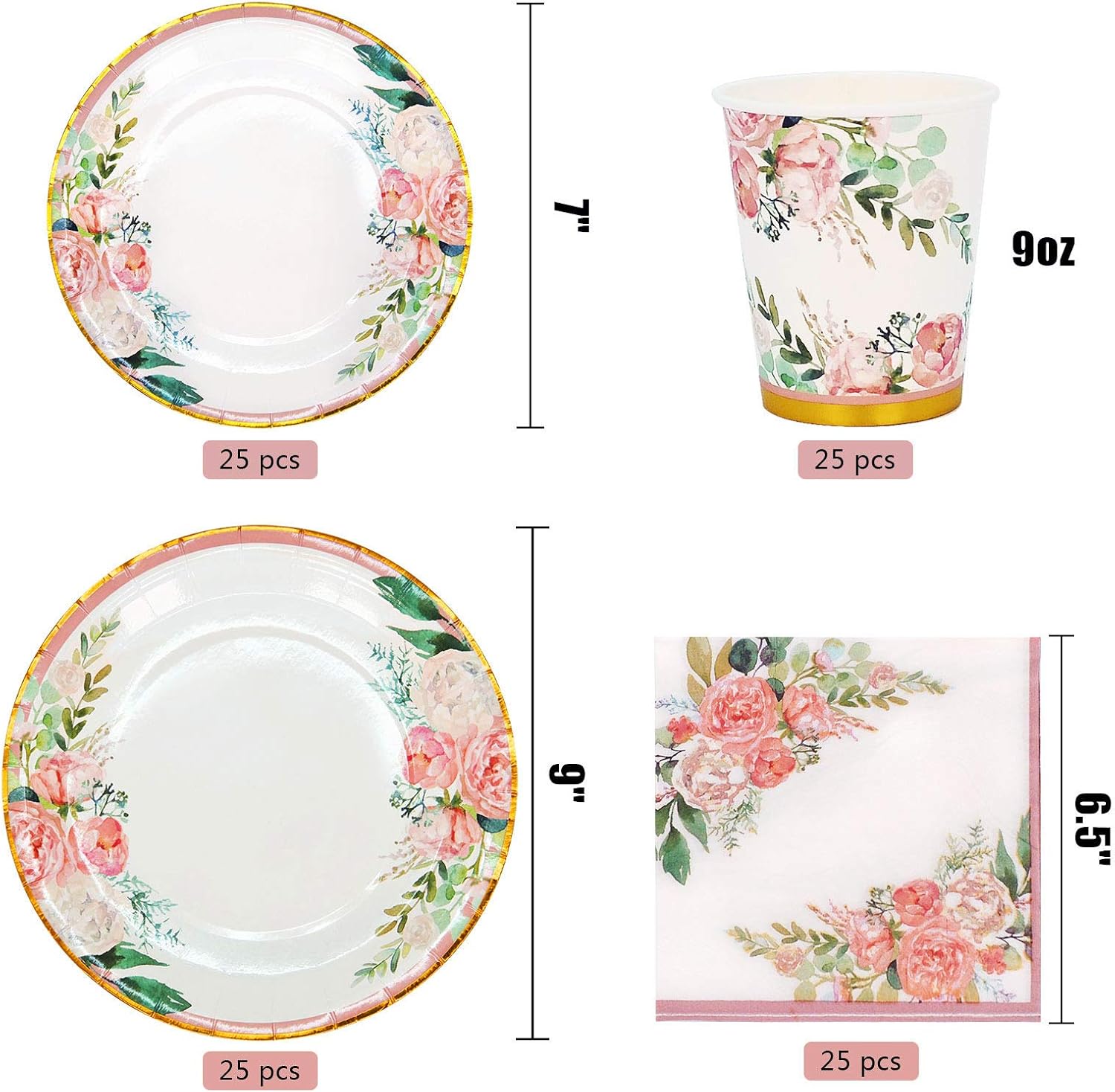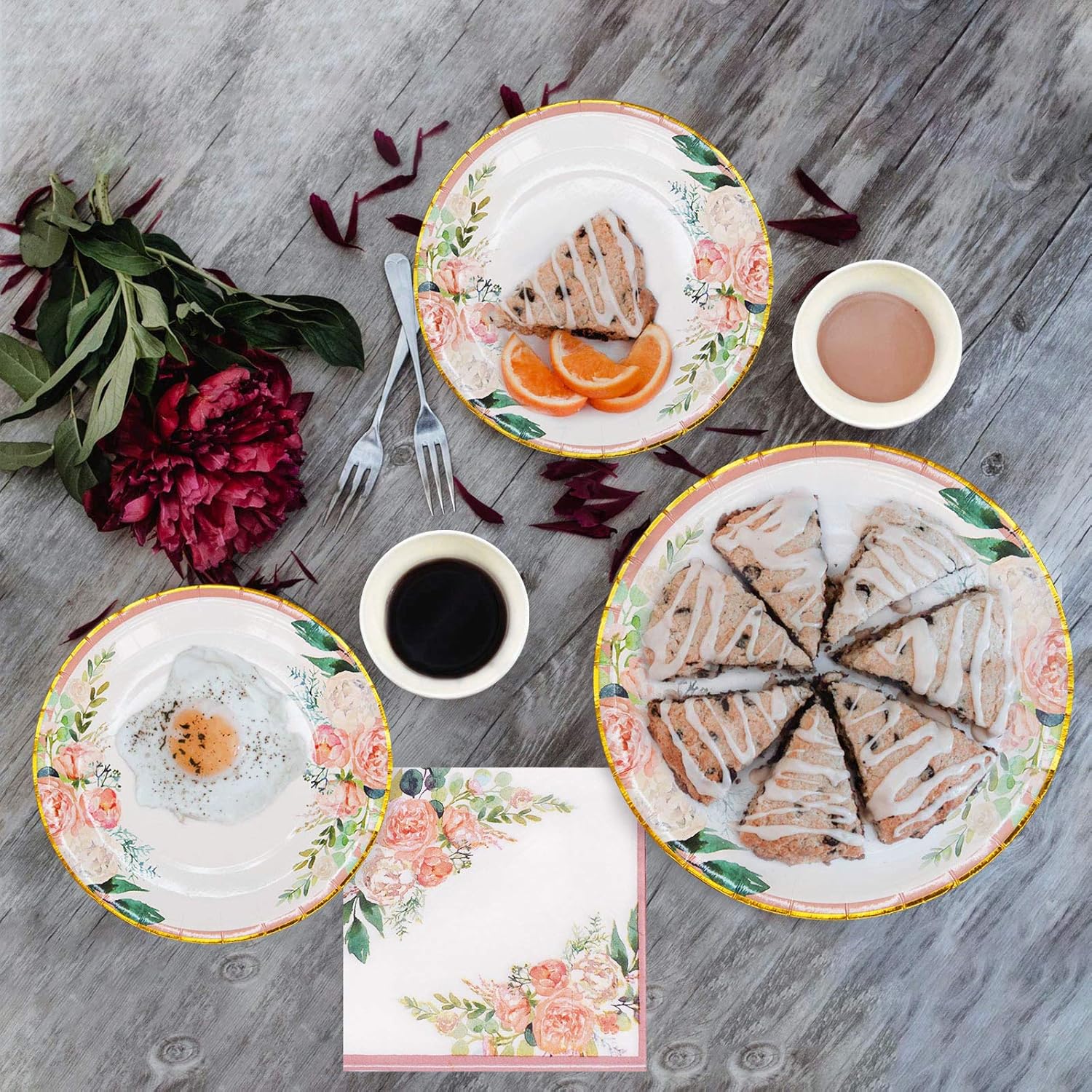 Floral Party Supplies paper plates and Napkins Sets for 24 Guest-Include Floral Disposable Paper Plates,Cups,Napkin forr Bridal Shower,Birthday,Wedding,Bachelorette party Supplies