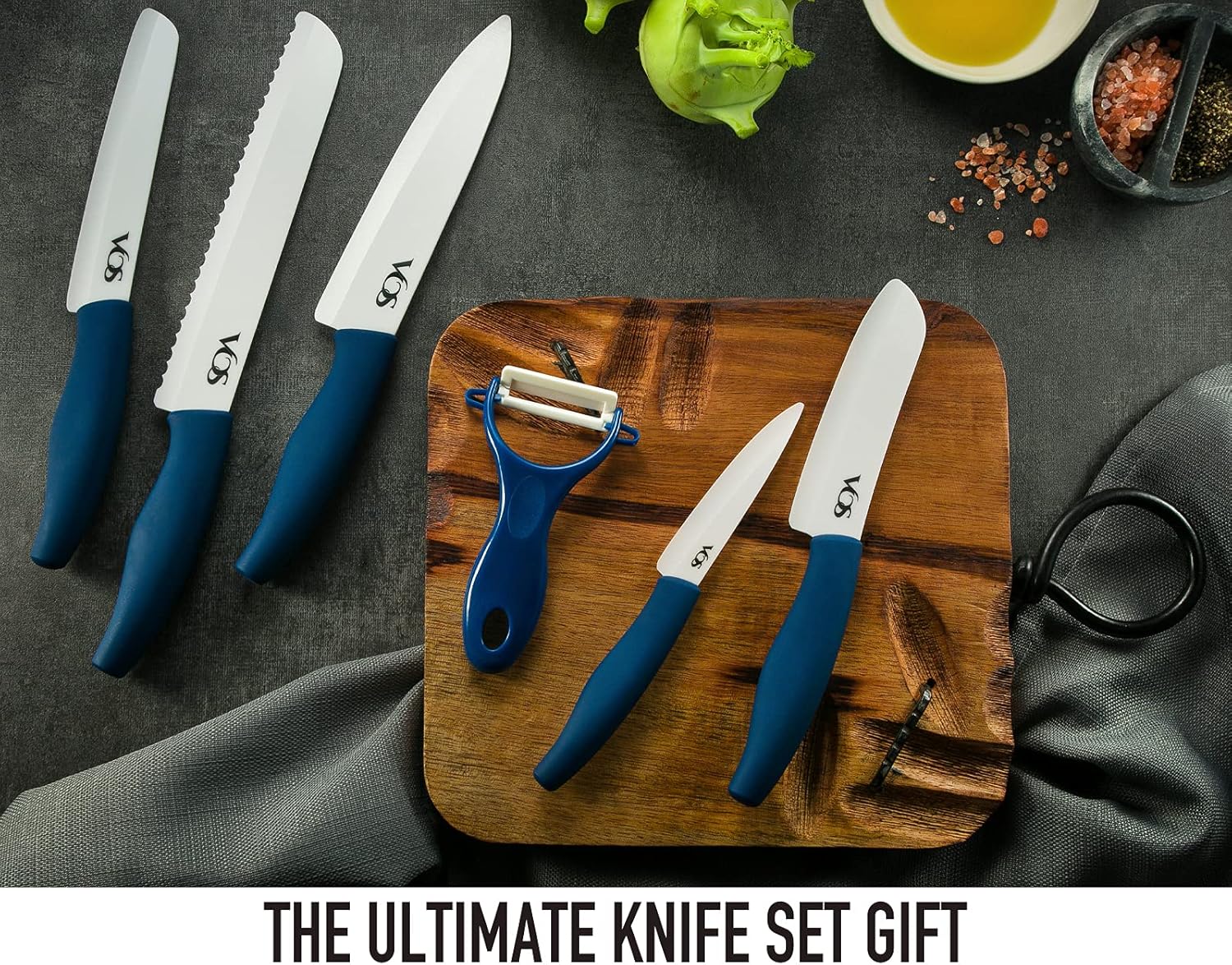 Vos Ceramic Knife Set with Peeler – 4", 5", 6", 7", 8" Blue Ceramic Kitchen Knives